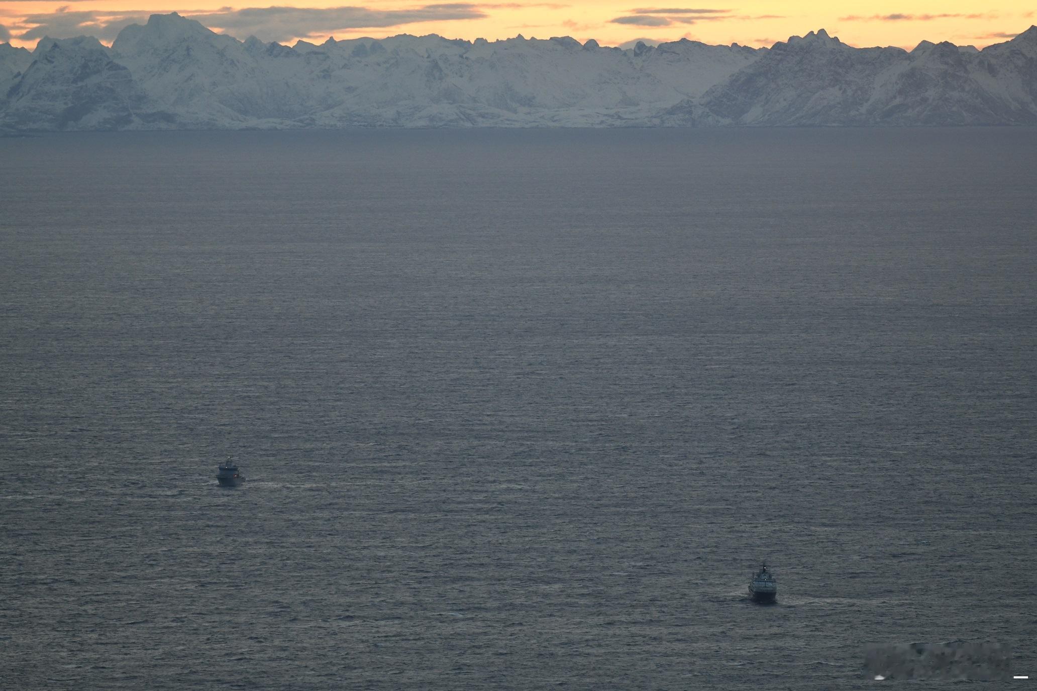挪威海岸警卫队Barentshav级巡逻舰在巴伦支海跟监俄罗斯“扬塔尔”号考察船。从图二看似乎距挪威海岸很近,可能是在挪威北部的瓦兰格尔峡湾——此峡湾由挪威瓦兰格尔半岛和俄罗斯雷巴契半岛包裹。