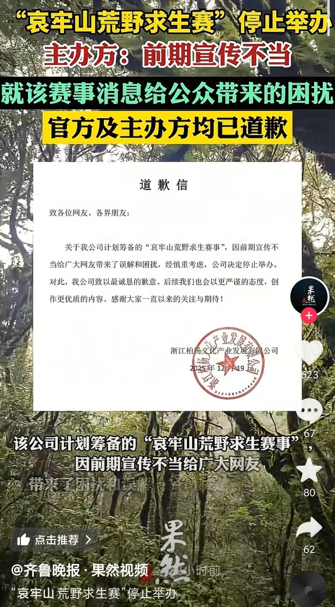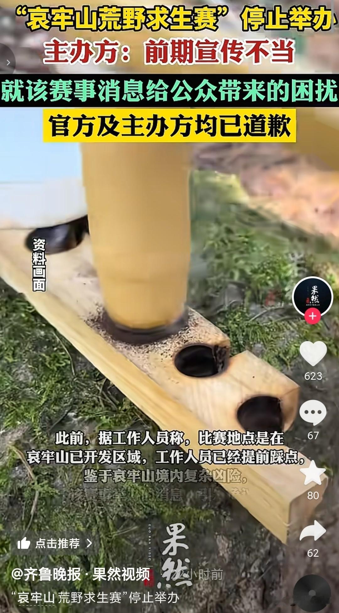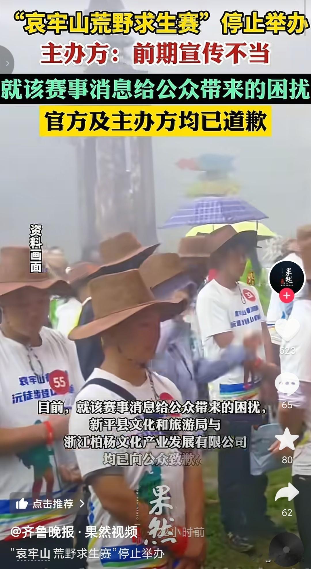 荒野挑战赛事,全都停了,就你一枝独秀,被立马叫停,这个先例谁也不敢先开呀。 本地人都不敢进去,出了事上面领导们也担不起责任。 太张扬了,利用哀牢山的神秘制造话题,还提出总奖池达到50万,还把地方文旅给拉进来助阵,这让很多人趋之若鹜,不为了这奖金,也要过来看一下这个哀牢山的面貌。 这么多人进去,严重破坏了生态平衡,把树砍了,把山上的食物都吃了,动物们吃什么? 简单的就是说是安全和生态环境是重中之重,其次,别的省都已经叫停了,自己也不愿做这个出头鸟,出点事地方担不起,省里的领导也担不起。