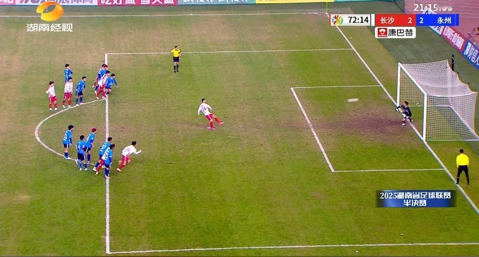 长沙队获得的这个点球真的来的有点猝不及防啊!这个点球裁判如此果断的吹罚点球,看来永州队员犯规动作很明显啊,可我们从回放画面来看,这个点球的判罚还是值得商榷的! 现在场上比分双方又回到同一起跑线了,这对永州队应该是非常不利的,因为他们下半场一直在防守,想要立刻改变战术,谈何容易。好在比赛只有十几分钟了,看看永州能否把比赛拖入到点球大战,如果能拖入点球大战,永州队就赢了一大半了。 插句题外话,现场两个解说真的有点太偏向长沙队了!