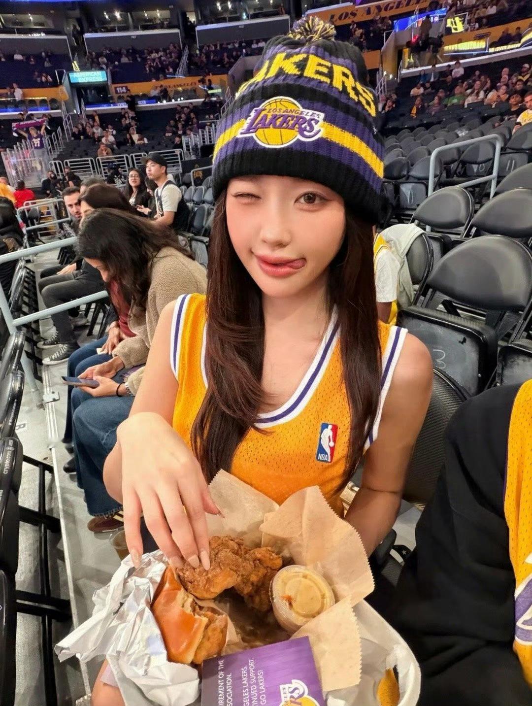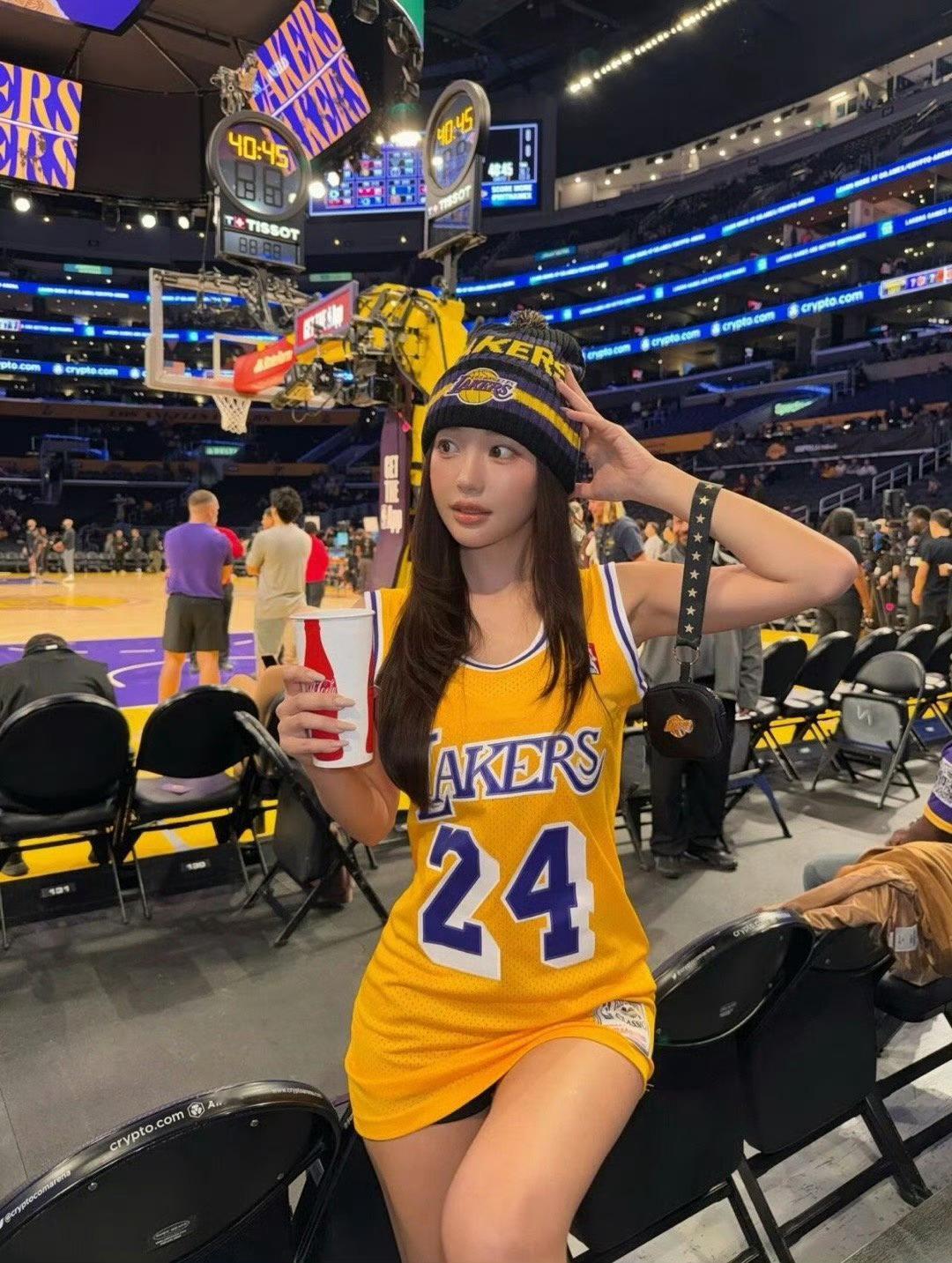 湖人场边的女球迷!我一个朋友想要她的联系方式。湖人国度洛杉矶湖人