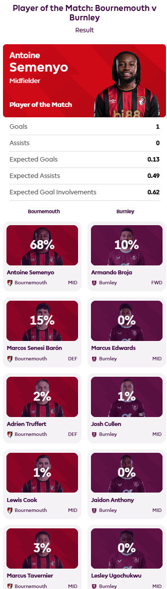 赛后,他也在英超官网的球迷票选本场最佳环节被评选为全场最佳球员。