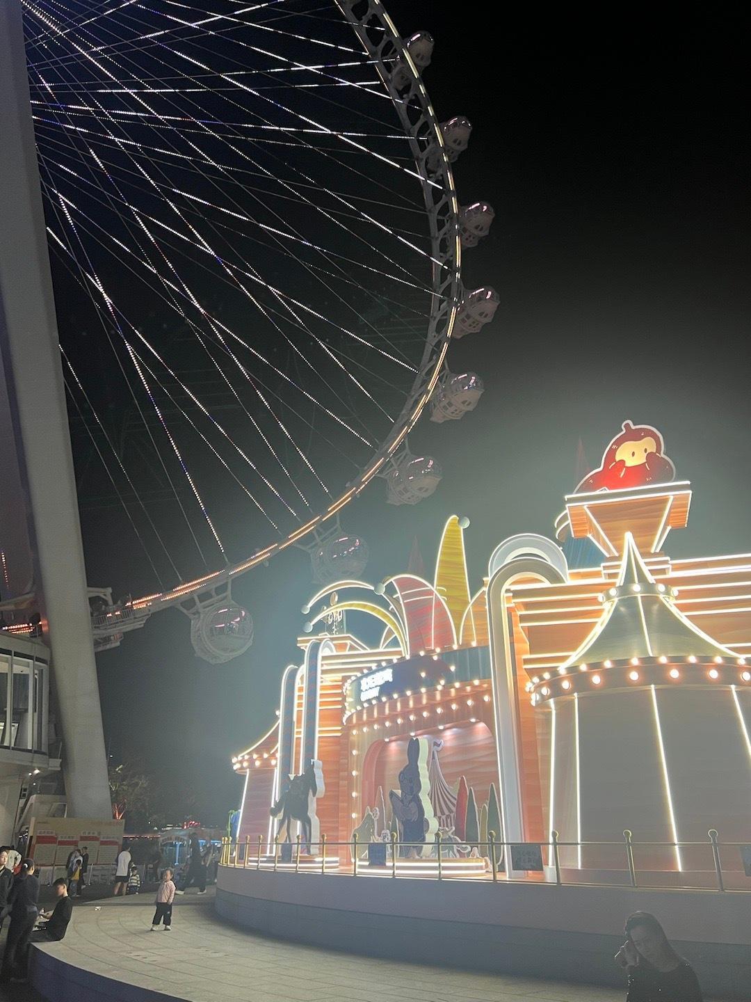 看到这条新闻时,我正身处27度的深圳(今天依旧是短袖啊)。一个在冬日里感受冰雪消融的“冷意”,一个在暖阳中体会初夏般的“高温”,同一个季节,同一个国家,气候却仿佛折叠成两个世界。感觉现在的天气越来越“不可控”,但科技也在默默努力——听说如今的防融技术已相当先进,这些冰雕艺术应该还是能维持到春日。愿南北的我们,都能找到与这个多变星球温柔相处的方式。 冰雪摩天轮 VS 夏日摩天轮