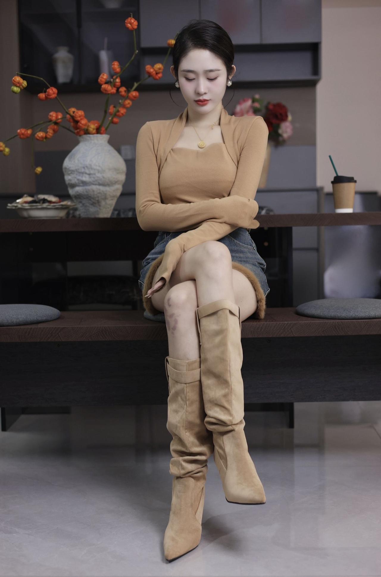 优雅气质,复古穿搭,时尚靴子,咖啡时光。