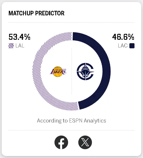 洛城德比,面对西部倒数第二的快船,湖人胜率高达53.4%,可能是因为两名首发里夫