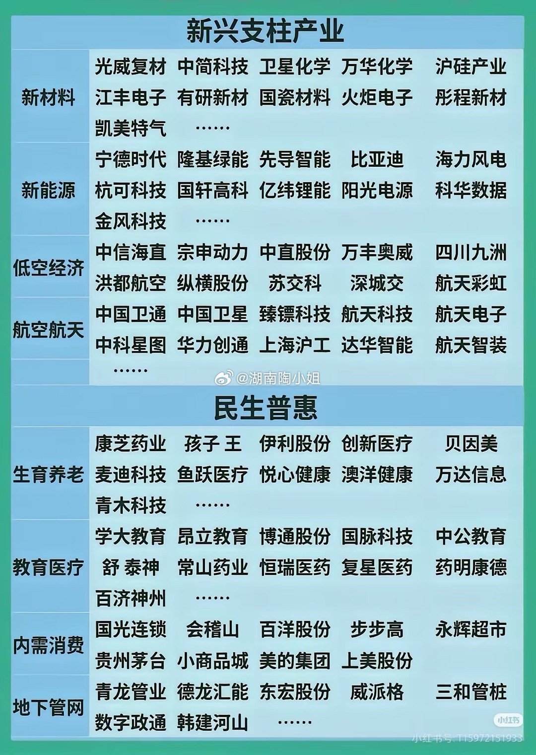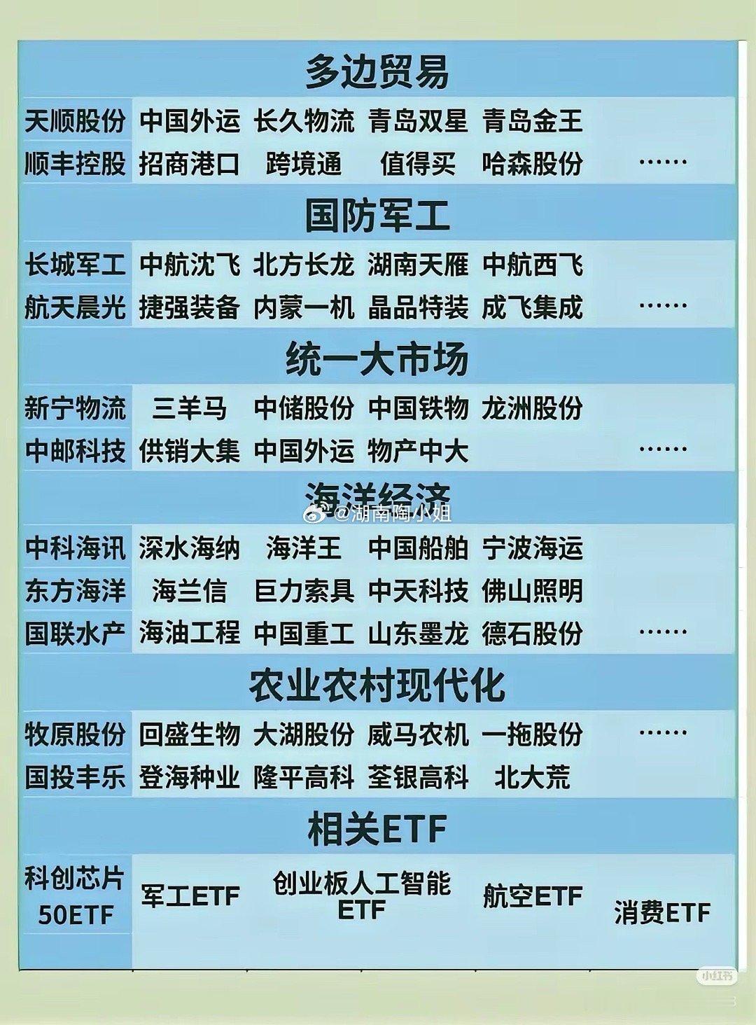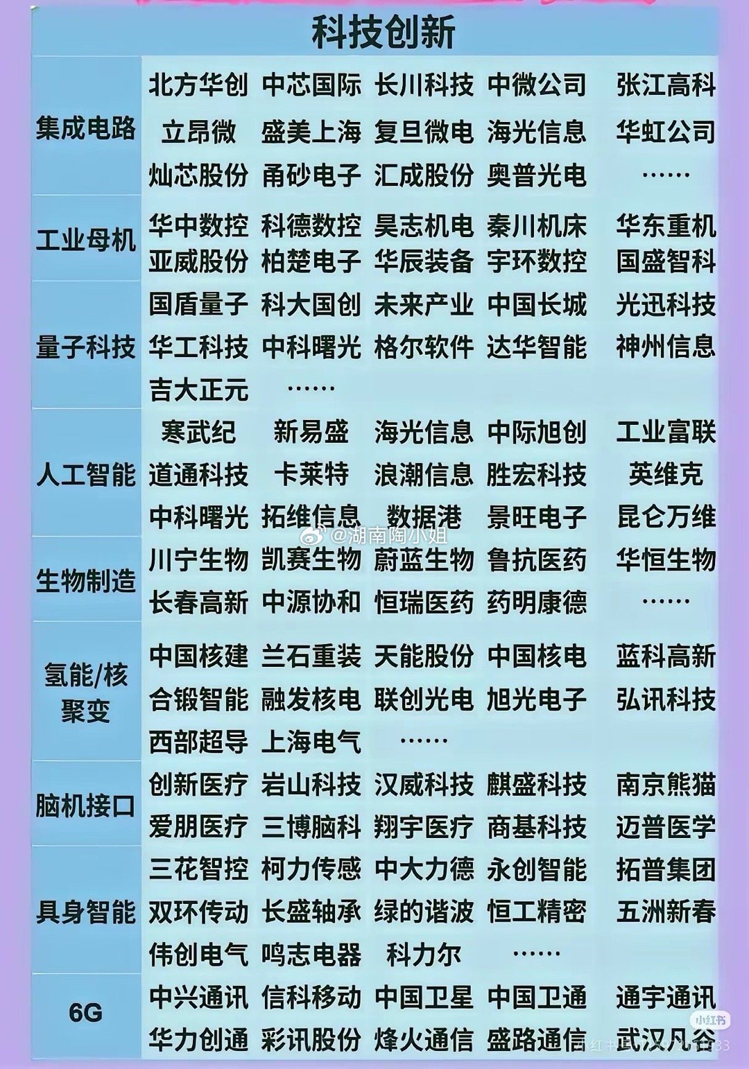科技创新产业及企业(收藏研究):1. 聚焦科技创新,列集成电路、工业母机、量子科技、人工智能、生物制造、氢能/核聚变、脑机接口、具身智能、6G等领域及代表企业;2. 新兴支柱产业(新材料、新能源、低空经济、航空航天)与民生普惠(生育养老、教育医疗、内需消费、地下管网),附各领域企业;3. 多边贸易、国防军工、统一大市场、海洋经济、农业农村现代化等板块及对应企业,并列出相关ETF(如科创芯片50ETF、军工ETF等)。