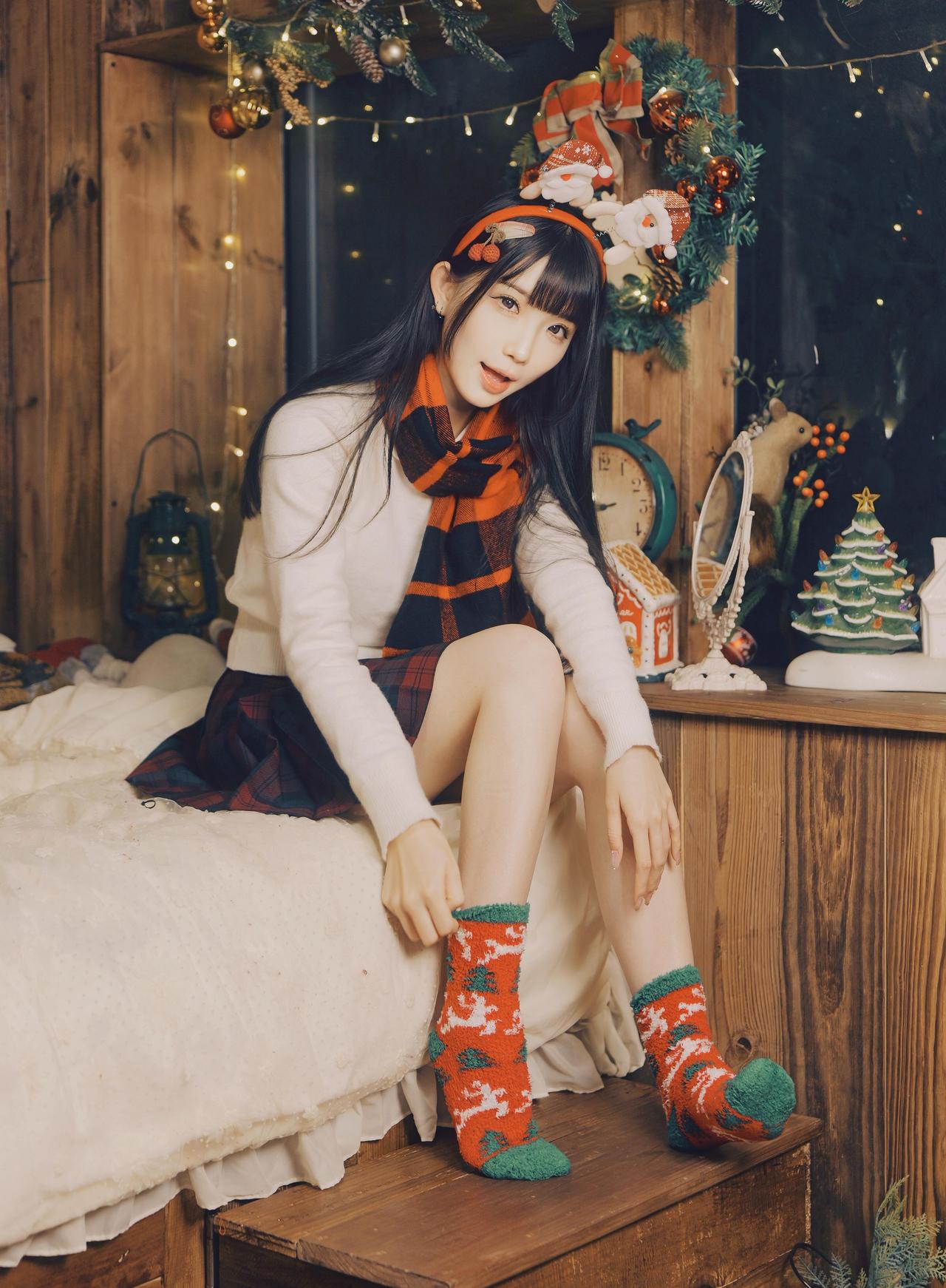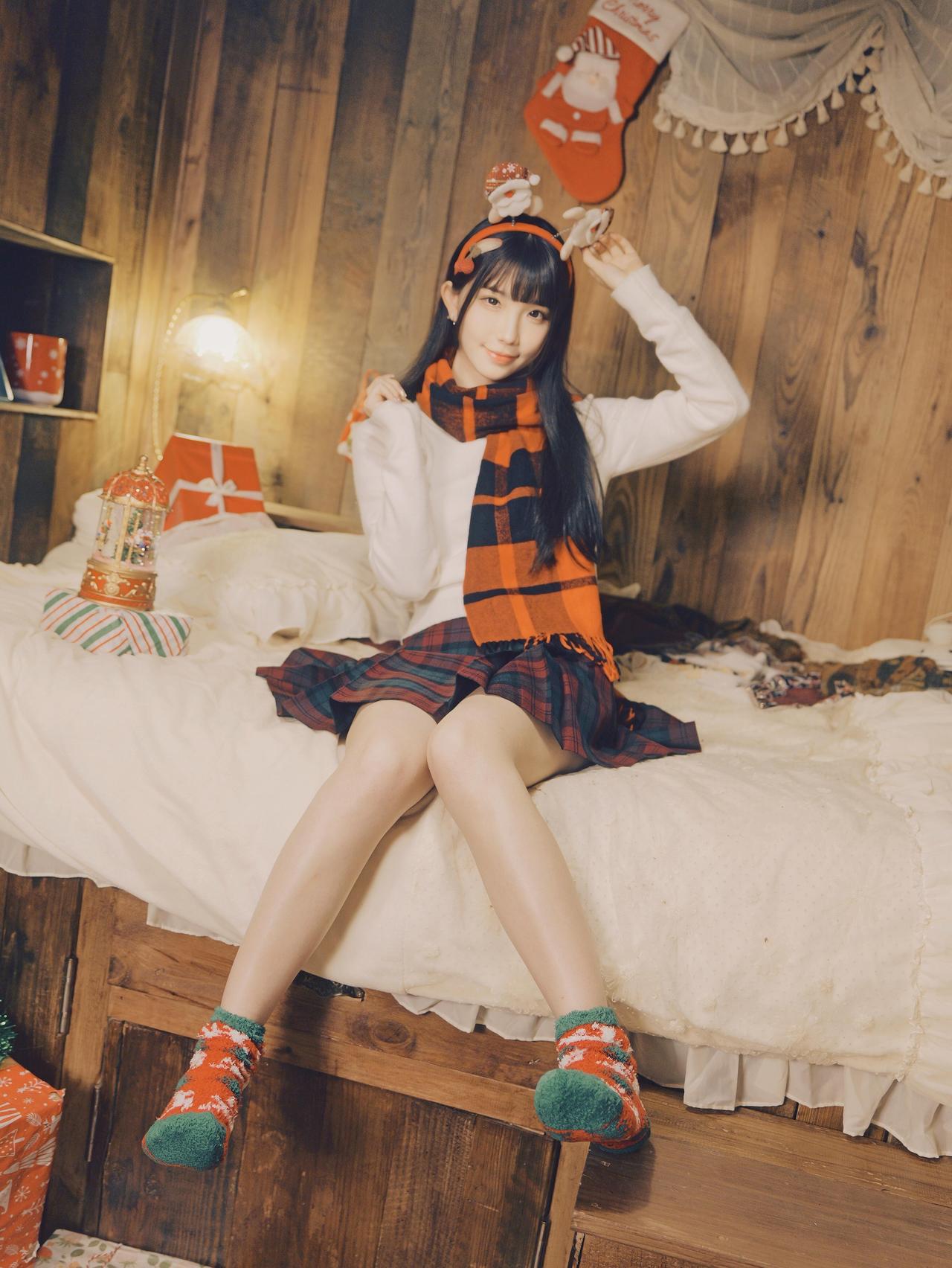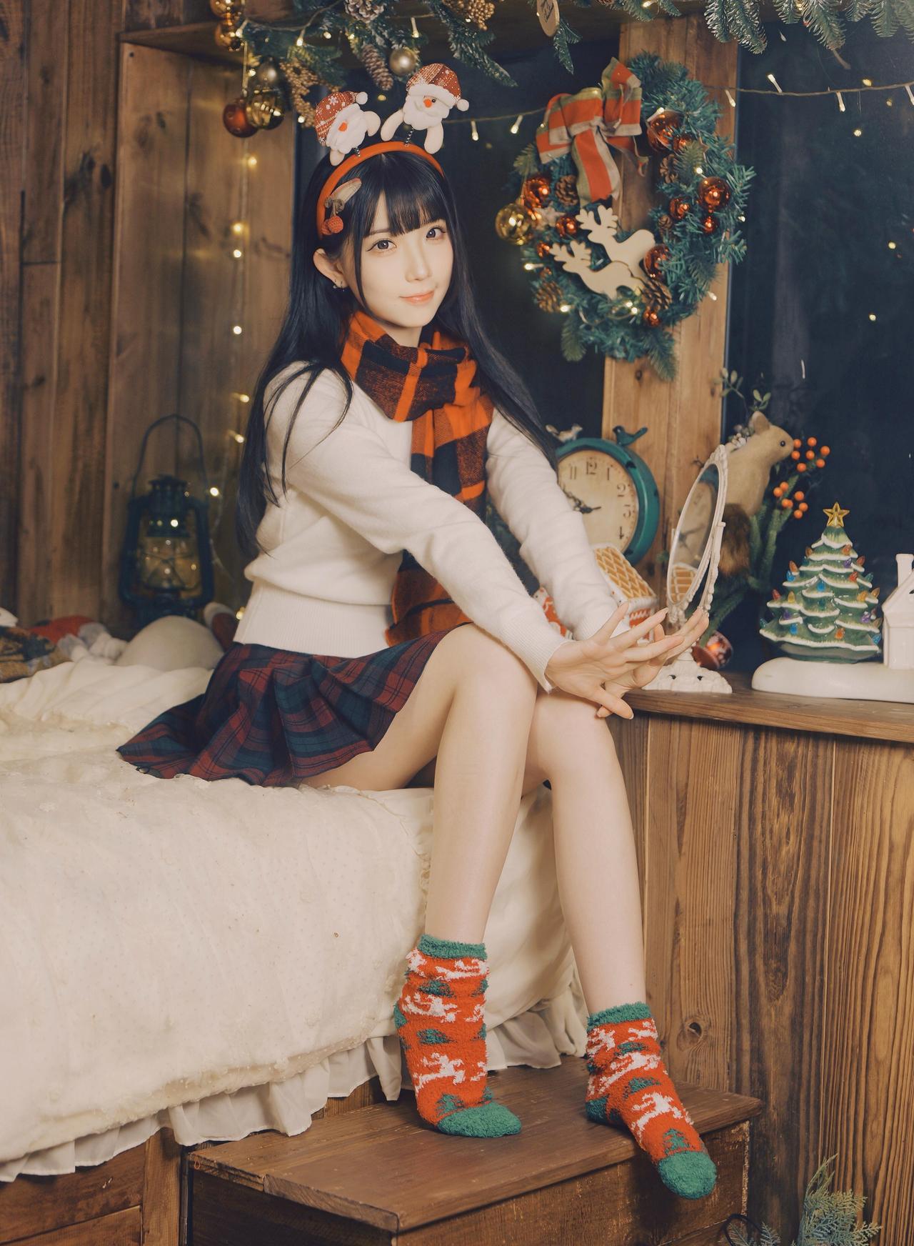 冬日暖阳下的少女,圣诞氛围满满,甜美可爱!