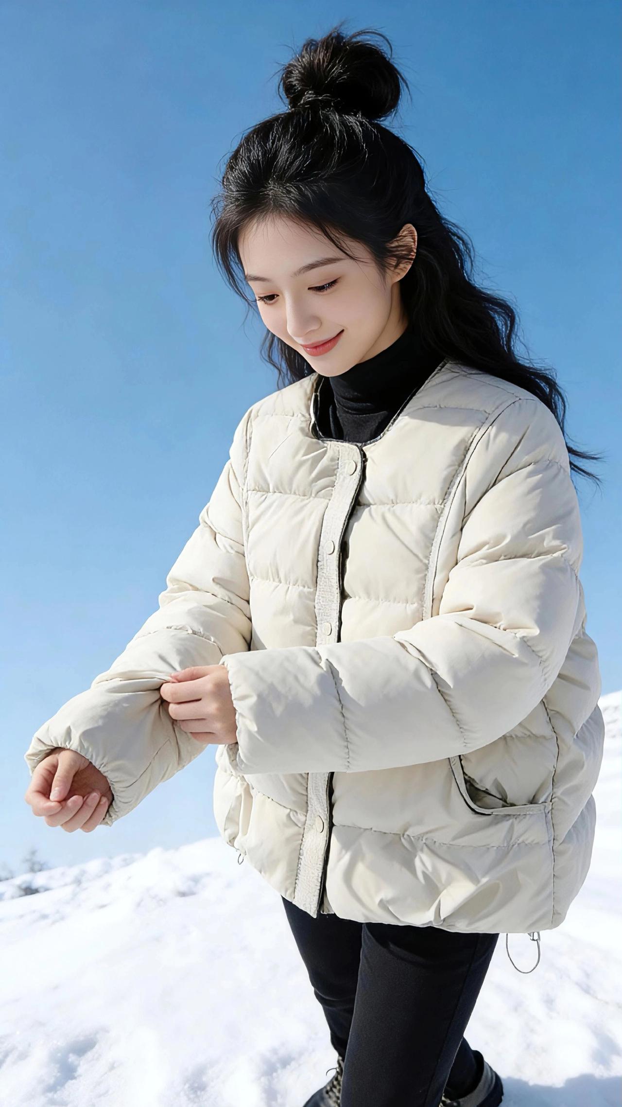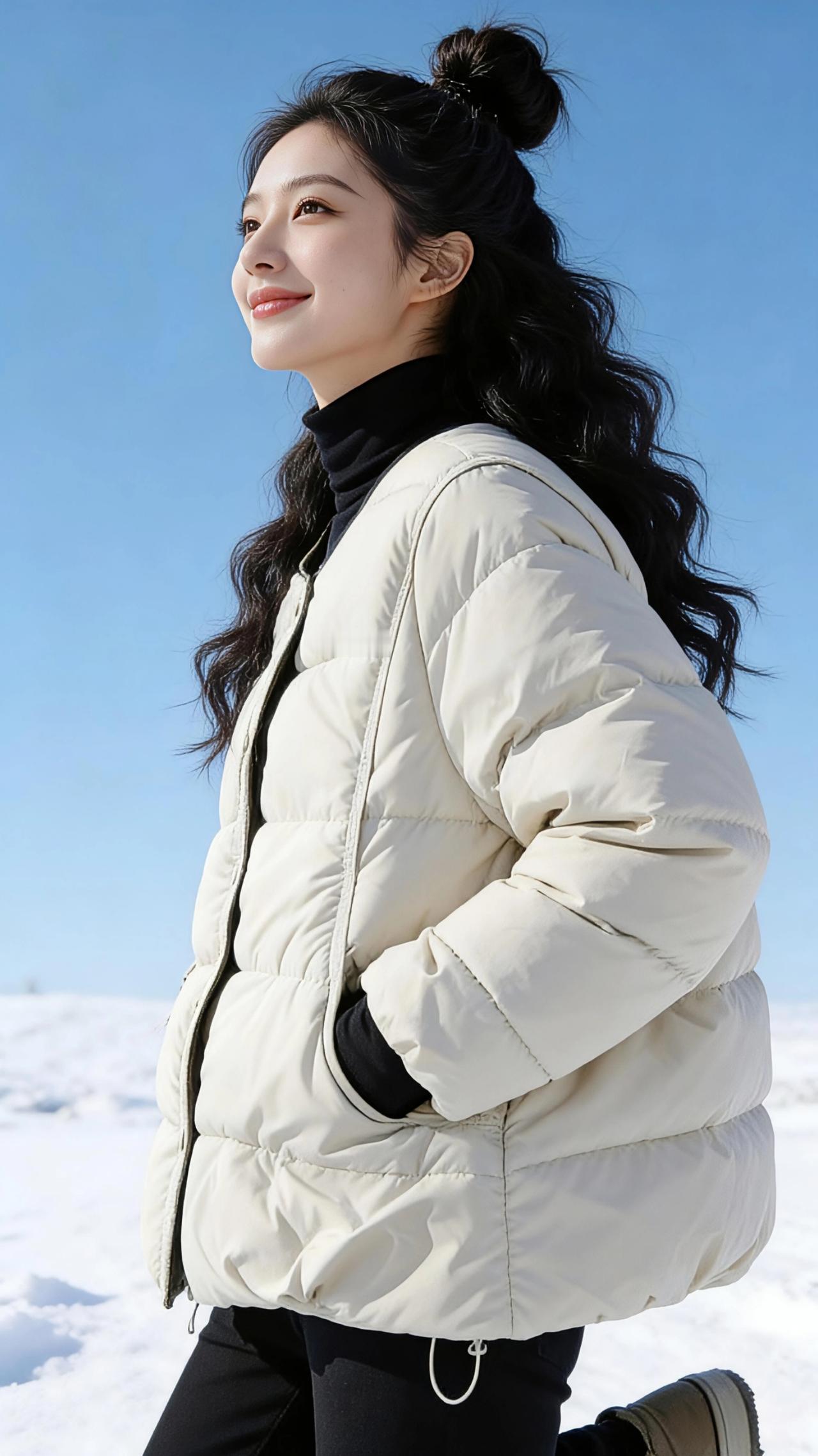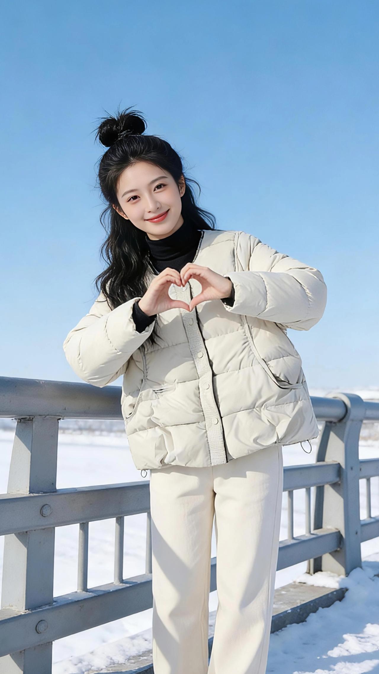 雪日序章 冬日的风裹着碎雪掠过肩头,天是洗练过的蓝,像一块刚裁开的冰珀,澄澈得晃眼。我踩着厚雪站在桥边,米色羽绒服的暖意裹着身子,黑色高领衫贴着脖颈,倒也不惧这凛冽。 抬手比出心的形状时,指尖触到细碎的凉,雪沫子在阳光里飘着,像撒了一把星子。蹲下身捧起雪的瞬间,松松的雪团从指缝漏下,簌簌落在雪地,惊起一圈细碎的白。靠在金属栏杆上时,后背触到微凉的冷,转头望向远处的雪原,白茫一片连到天际,倒觉得这冬日的空旷里,藏着最温柔的热闹。 把手揣进衣兜往前走,雪地被踩出咯吱的声响,像冬日特有的絮语。忽然想抬脚跳一下,米色的裤脚扫过雪面,棕色靴子沾了雪粒,在空中划出轻快的弧。低头拢袖口时,睫毛上落了点雪,轻眨一下,那点白便化在风里,只留一丝凉意在眼角。 这雪天的蓝与白,裹着少年意气的鲜活,像一支未写完的短诗,在北国的冬日里,轻轻落笔。 高级感穿搭 小个子穿搭 冬季穿搭 棉服