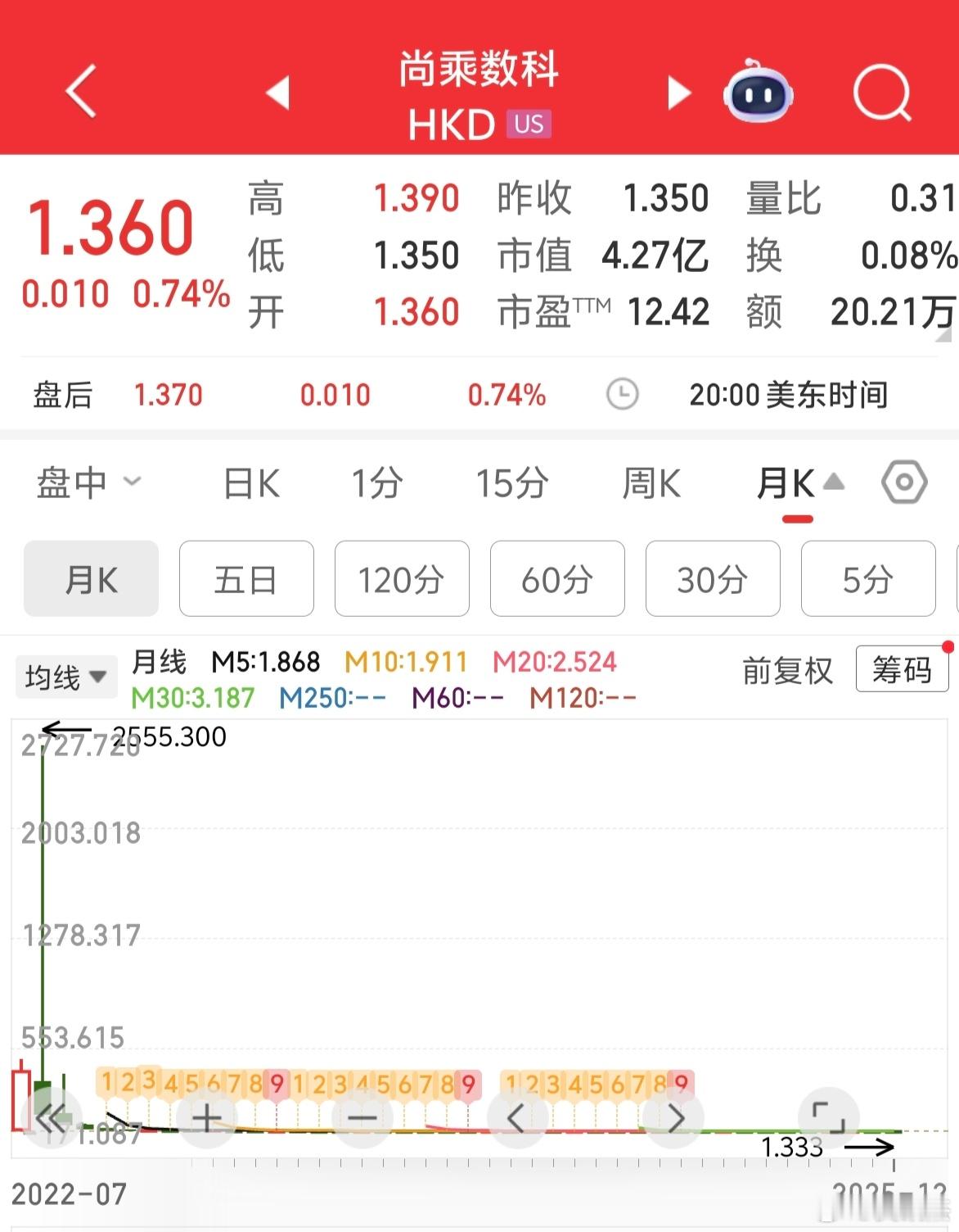 从12美元涨到2555美元,如今跌到1.36美元,这就是美股无涨跌幅的波动,太吓人了吧!