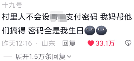 村里人不会设支付密码, 我妈帮他们搞得密码全是我生日