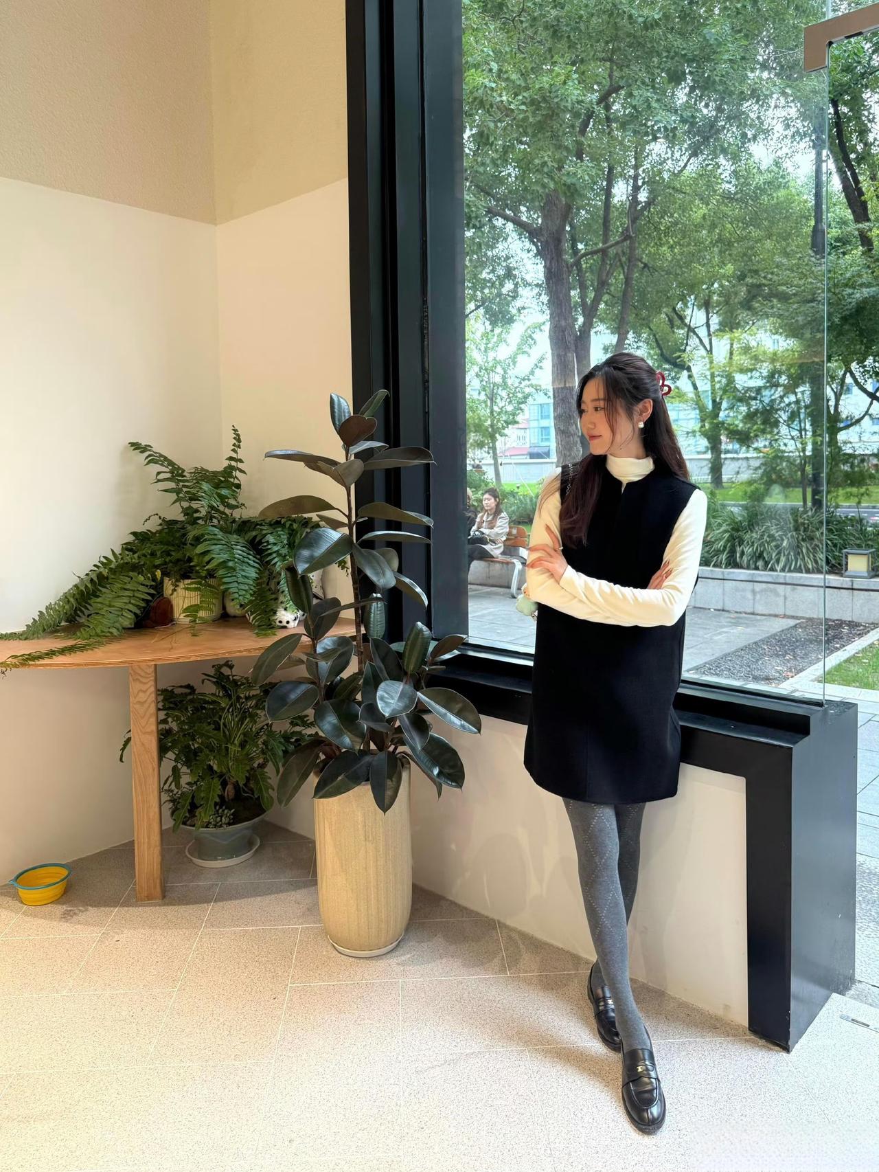 这套穿搭是简约舒适的黑白灰通勤休闲风,松弛又不失利落质感。黑色无袖背心裙+米白高领内搭,基础款叠穿既保暖又显层次,宽松版型营造出慵懒休闲感,适配日常通勤或轻居家场合。 搭配黑色乐福鞋简约利落,与整体风格呼应,强化了通勤适配度。能充分展现穿着者简约舒适的松弛魅力。黑白色调穿搭 黑白灰穿搭技巧 黑色背心裙