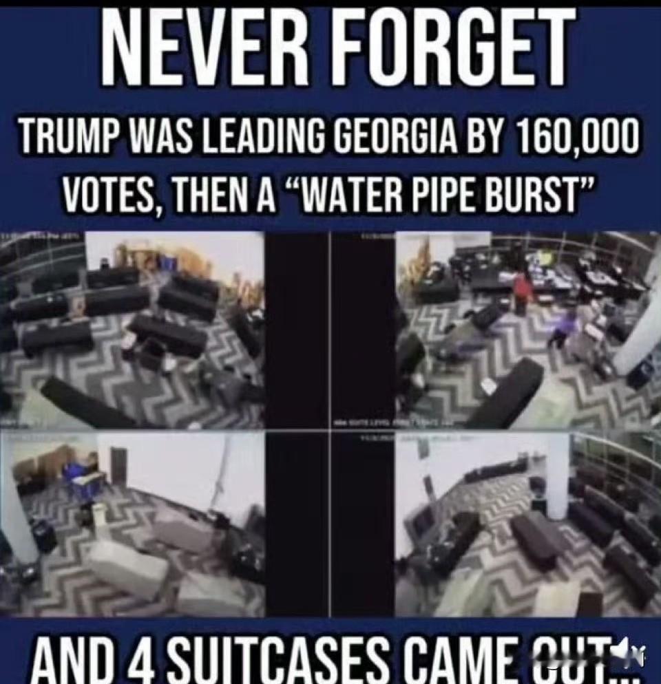 2020年這個爆水管是不是發生在喬治亞州富爾頓? 當晚,川普一度領先160,000票,然後點票大廳突然爆水管,所有的點票及監票人員被趕走,只剩下幾位民主黨干將。