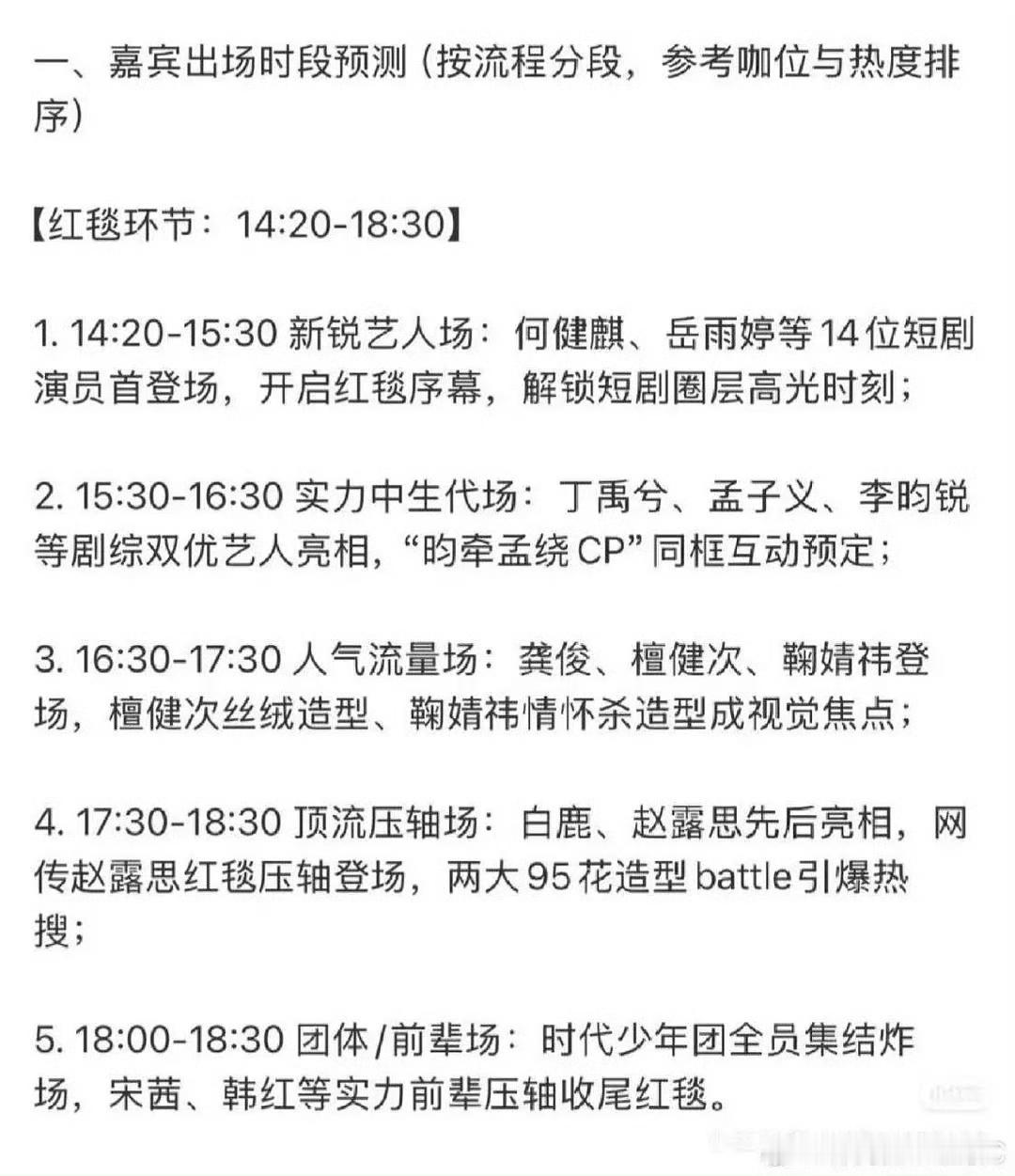 娱乐星光大赏出场时段预测网传星光大赏出场顺序网传星光大赏出场顺序是真的吗