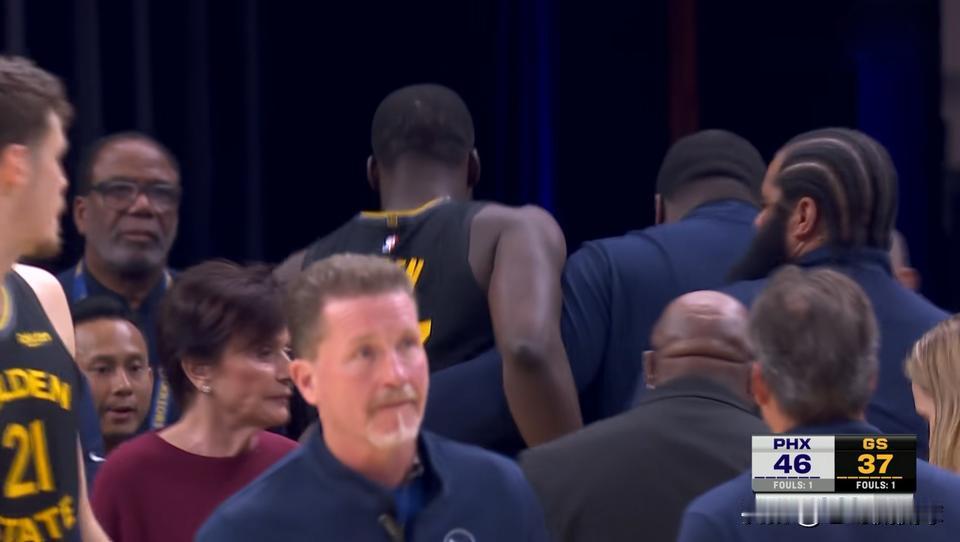 太阳恶汉狄龙真是太幸灾乐祸了!在今天太阳客场挑战勇士的比赛中,当时比赛进行到了第二节的十分多钟,勇士恶汉追梦格林由于连续吃到两次技术犯规而被驱逐出场,值得一提的是,当狄龙在场上看到追梦格林被驱逐出场的身影时,他的脸上露出了幸灾乐祸的表情,狄龙的笑中包含着一丝嘲讽和一丝窃喜。