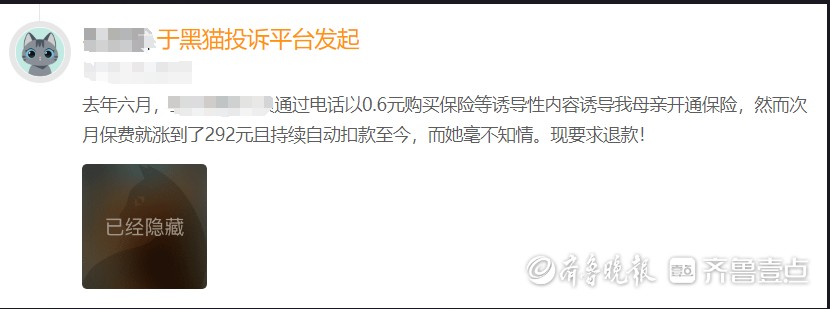 然而,李先生并非个例。在社交平台上,不少消费者反映存在被误导购买保险和在用户毫不知情的情况下自动扣费等问题。在黑猫投诉平台上,针对“莫名被投保”的投诉达三百多起,不少消费者表示,他们在进行扫码租用共享单车、浏览网络社交平台等看似平常的行为中,因操作界面上的隐蔽设置,被动购买了互联网保险产品并开通自动续费功能,此后每月被自动扣除几十元至上百多元不等的保费。