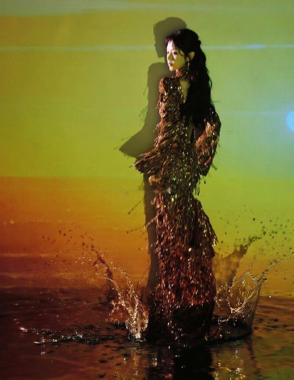 田曦薇星光大赏出图🦋礼服:Gucci by Demna 2026春夏首季作品珠宝:Chaumet Bee de Chaumet系列珠宝鎏金流苏长裙,金色流苏与光影交织,行走时流苏随身形摇曳形成动态光影效果,神性效果拉满!田曦薇金色流苏裙田曦薇