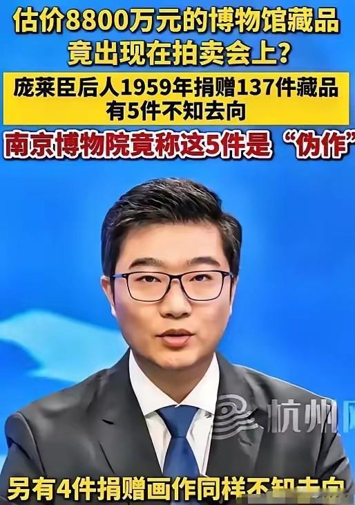 南京博物馆这次尴尬了。估价8800万元的捐赠古画准备拍卖,被捐赠人发现了,一查才知道,自家捐赠给南京博物馆其它的4件文物也都不见了。南京博物馆怕是做梦都没想到,时隔六十多年,捐赠者的后人居然还记着这笔账! 南京博物馆这几天愁云惨淡,馆长办公室的灯亮到后半夜,烟灰缸里的烟蒂堆成了小山。谁也没想到,六十多年前的一笔善举,竟在今天成了烫手山芋——庞莱臣的后人拿着当年的捐赠清单找上门,指着拍卖预展上那幅估价8800万的古画问:“这画是我家捐的,怎么要卖了?” 这话像颗炸雷,在馆里炸得人仰马翻。 说起来,庞莱臣这名字,在收藏圈里那可是如雷贯耳。民国时候,他手里的宝贝能让国内外藏家打破头——王羲之的手札、宋徽宗的花鸟、元四家的山水,随便拎一件出来,都是能写进美术史的硬通货。老爷子一辈子爱画如命,临终前却跟后人交代:“这些东西是国家的文脉,咱得让它们有个好归宿。” 1959年,新中国刚站稳脚跟,百废待兴。庞家后人抱着十几个木箱子走进南京博物馆,打开箱子时,连见惯了珍品的老馆长都直咽口水——137件藏品,件件带著流传有序的印章,绢本的包浆温润,纸本的墨色鲜亮,全是硬货。 “不要钱,”领头的庞家人摆摆手,语气挺实在,“放家里是传家宝,放博物馆是国家的宝。让老百姓都能看上一眼,比锁在柜子里强。”当时的捐赠书上,红章盖得清清楚楚:“无偿捐赠,永久展出。” 这事儿在当年是段佳话,博物馆特意给庞家发了烫金的感谢信,还在展厅设了“庞莱臣捐赠专厅”,玻璃柜里的字画前,总围着攒动的人头。 谁承想,六十多年过去,人心就变了味。 这次要拍卖的画,是幅清代石涛的山水,当年跟着那137件一起进的馆。不知怎么就被混入了“馆际交流拍卖品”名单,还明晃晃标着“估价8800万”。偏巧庞家后人是个较真的主儿,没事就爱逛拍卖预展,一眼就认出了画角那方“莱臣审定”的小印章——那是老爷子当年盖的私章,错不了。 “不光这一幅,”庞家后人翻着手机里的老清单,脸色越来越沉,“还有四件,清单上写着‘入藏’,馆里的记录却查不到了。你们自己说说,这叫什么事?” 馆长擦着汗,一边让人翻库房,一边打圆场:“可能是年代久了,登记出了岔子……”话没说完,就被怼了回去:“岔子?137件捐的,少了5件,这岔子也太大了!” 消息一传开,收藏圈炸了锅。“庞莱臣的东西也敢动?”“当年人家是冲着‘永久展出’才捐的,这要是真卖了,寒了多少藏家的心?”更有人翻出当年的老报纸,照片上庞家后人抱着画箱走进博物馆,脸上的笑透着真诚,跟现在的尴尬场面一比,让人心里不是滋味。 后来听说,那幅石涛山水连夜从拍卖名单上撤了下来,博物馆也急吼吼地查库房,查旧档案。只是那消失的四件,还没个说法。 有人说,这事儿得严查,不然对不起当年庞家的信任;也有人叹口气,说六十多年了,中间多少人事变动,或许真是保管出了疏漏。但不管怎么说,有句话在圈子里传得挺广:“人家捐的是文脉,不是让你拿来换钱的。这信任要是碎了,可就难拼回去了。” 想想也是,当年庞家捧着宝贝送上门,图的不是名利,是“让更多人看见”的初心。如今这初心要是走了样,再贵重的古画,也失了魂不是?