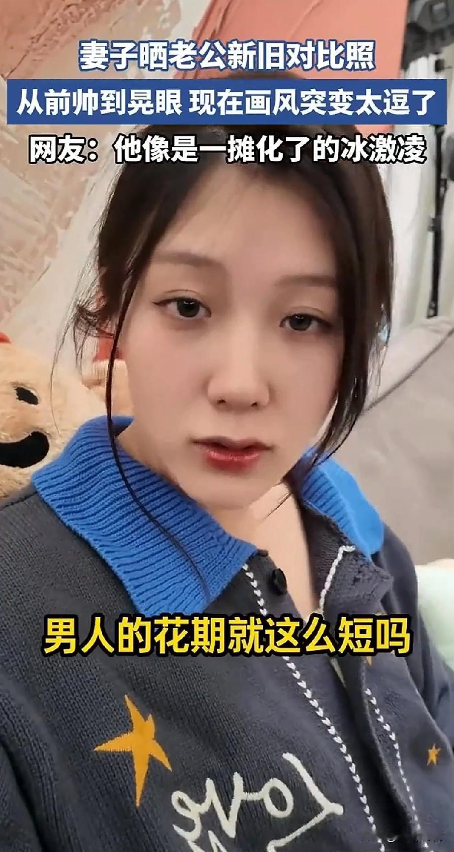 女子吐槽男人的花期这么短吗? 她拿出了自己老公年轻时候的照片, 确实青春洋溢又帅气, 气质比偶像明星也不输多少, 当时就是因为老公帅气的样子, 这才选择谈恋爱后结婚, 万万没有想到, 老公现在如此肥胖, 肚子上的肉非常多, 而且人也变得有些招人烦, 看着这样的老公躺在床上看手机, 她又看了看手机里面老公的照片, 不禁的委屈起来, 这差距也太大了, 忍不住喊了一下老公, 本来开心玩手机的老公, 扭头看了看她, 手还在挠着自己的肚子, 这可让她实在受不了了, 忍不住吐槽男人的花期这么短, 不知道的以为是俄罗斯女人的花期, 大家认为男人的花期短吗? 婚姻的苦恼分享 婚后的男人变化 中年男子的感慨 颜值老男人 对帅哥照点评 论男人的花期