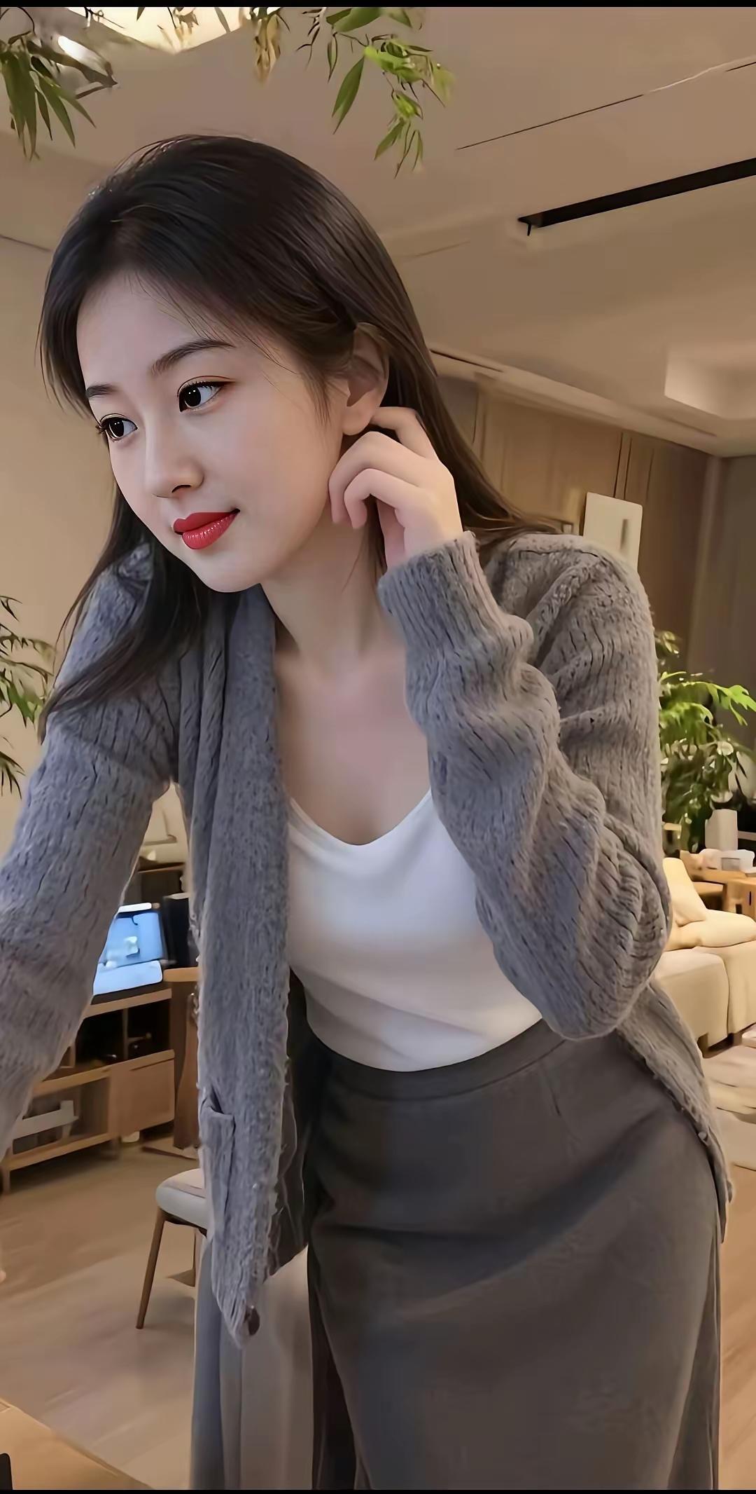 温暖冬日穿搭,灰色毛衣+白色内搭,简约又时尚!