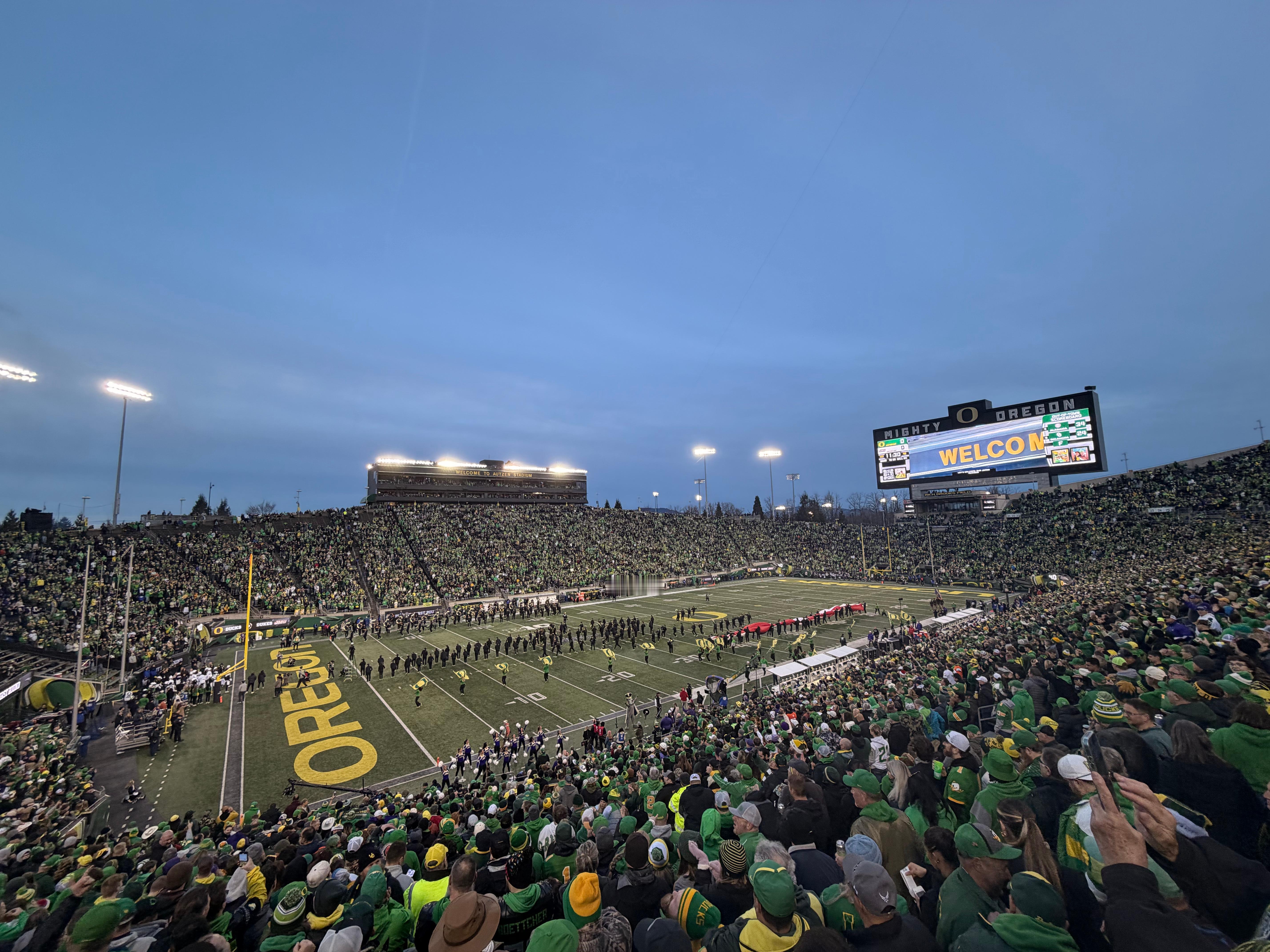 第二次看大学橄榄球季后赛!!!还是被校园体育的归属感深深震撼!!!出场仪式真的太帅了…宿命感拉满!!!狠狠羡慕!!! 美国·University of Oregon