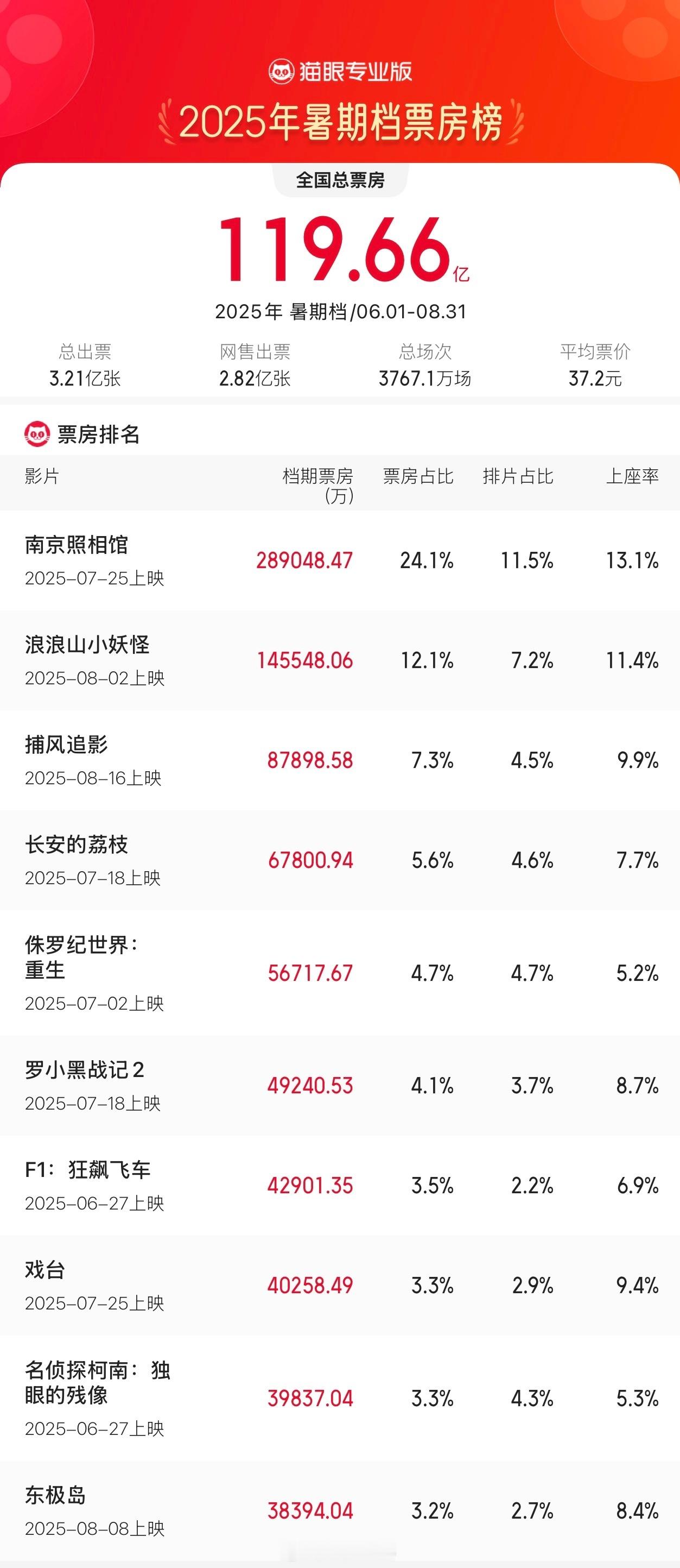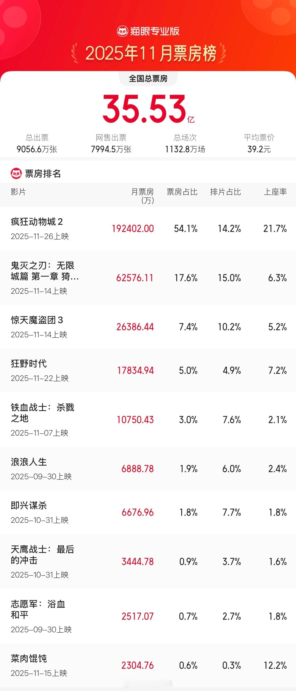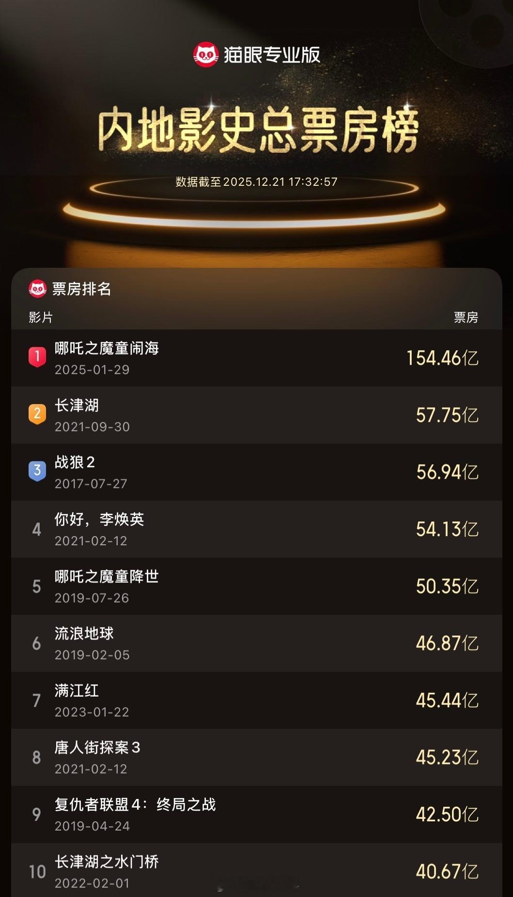 2025影史动画电影票房最高一年动画电影创造历史的一年,我觉着不是单个电影的胜利,而是题材类型赢了,正是因为前些年的铺垫才导致今年的爆发。2025动画电影票房前十的电影,里面有几部是档期冠军亚军。《哪吒之魔童降世》年冠电影,《浪浪山小妖怪》暑期档亚军,《疯狂动物城2》11月票房冠军。看好动画类电影再接再励,要继续能打呦!跨年电影愿2025年度电影结算画面