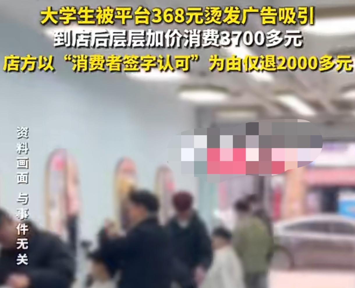 368元烫发到店变3700元,大学生被宰哭! 刷到368元烫发广告兴冲冲到店,结果被连环推销套牢,最后掏了3700元!低价引流就是钓鱼,一不小心就成冤大头。 上海985大学生小李,被平台广告吸引后按要求加微信预约,到中环百联谱曼美发店后,先被推荐600元“硬化”处理,后续又遭连环推销,骑虎难下选了最便宜套餐,结账才知要3700元。广告是诱饵,套路才是真。 遇到低价美发广告别盲目冲,先问清是否有隐形消费;到店后拒绝临时加项,被强制消费立刻录音留证,直接打12315投诉。维权硬气点,才不会被店家拿捏。 有人说签字就该认账,是小李自己不谨慎;也有人骂店家欺诈,专坑涉世未深的学生。是自愿消费还是恶意套路?这事真的越想越气。 上海曾有女子被美容店诱导,两年花55万还背68万债,律师说商家隐瞒价格、强制推销已涉嫌违法。美容美发的坑,真的防不胜防。 低价引流坑人不浅,消费前一定要问清所有费用,别被店家牵着鼻子走。你有没有遇到过美发店的隐形消费?评论区吐槽避坑!