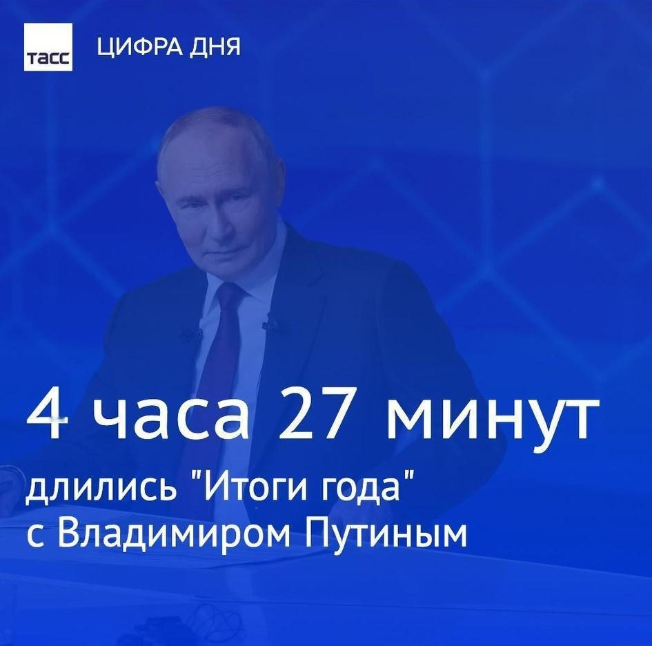 塔斯社:普京的“年度总结”直播连线时长为4小时27分钟,期间点评了逾70个议题。