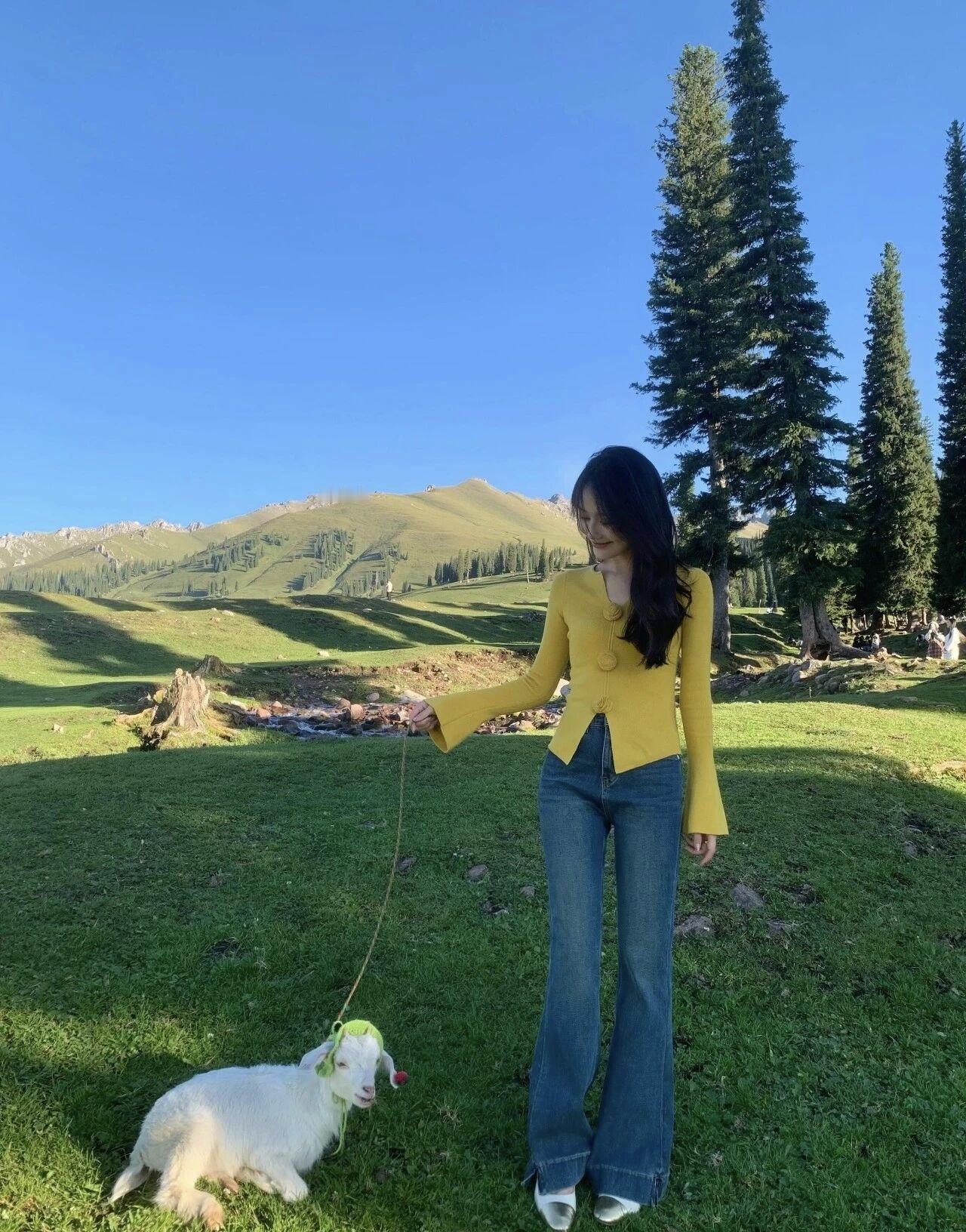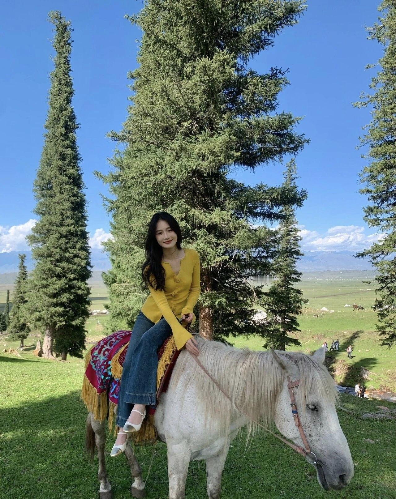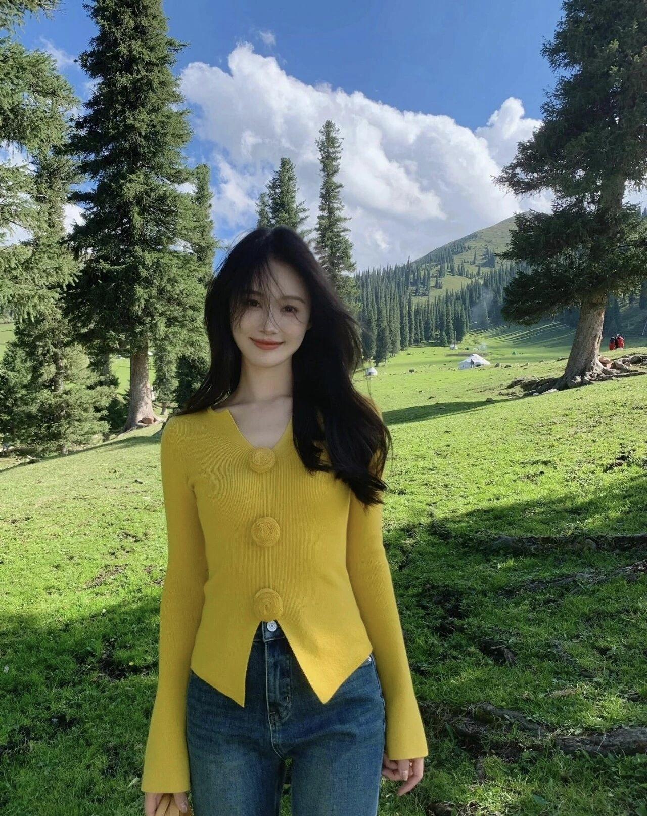 风吹过的草原藏着无尽温柔,穿喜欢的黄衫,看满眼的青绿,这就是旅行最美好的模样呀。