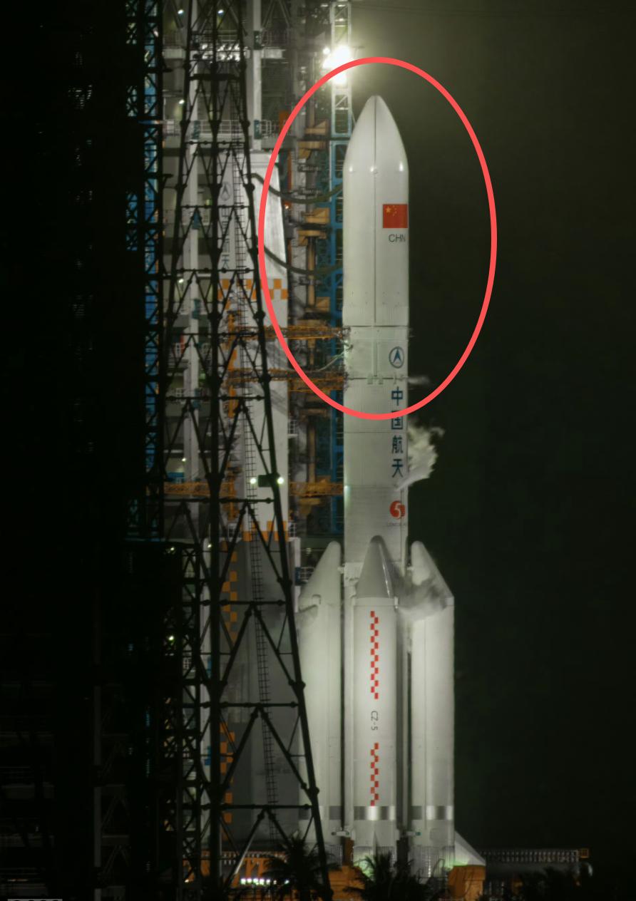 发现一个细节。 这次胖五的任务标识,显示的是常规整流罩,但是实际发射时,使用的却是大型整流罩。 按照推算,这个整流罩足足高18.5米,直径5.2米。 相当于两辆并排的大卡车,被包在了里面。 据说这一次发射的,是单颗卫星,这个头确实惊人。 估计是为了开春播种的时候,能够更清晰的看清地里的病虫害吧。