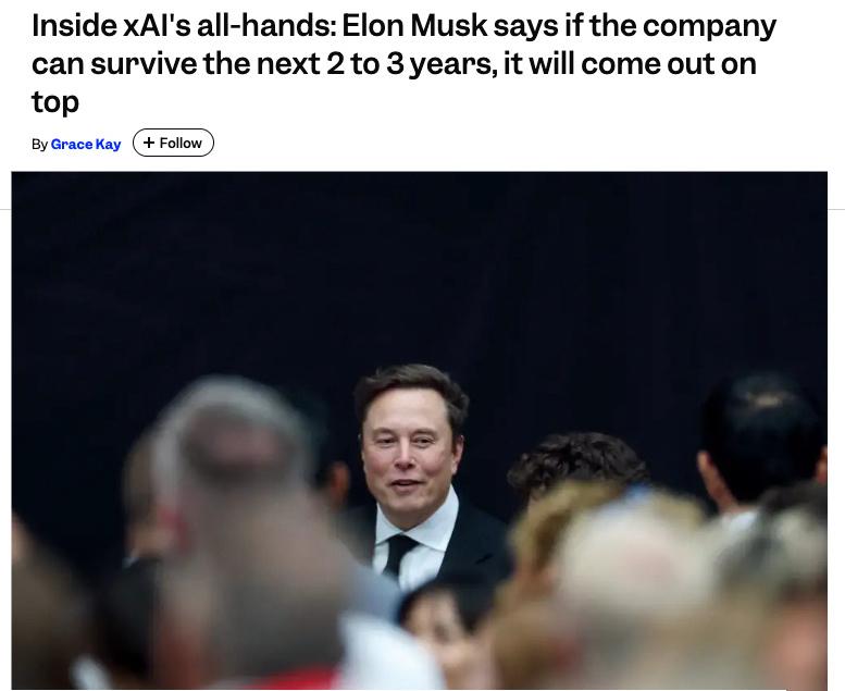马斯克最近在xAI的内部会议上,给员工划了条清晰又紧迫的路线。他直白地说,这场人工智能竞赛,胜负就在未来这两三年。关键就看你有没有本事活下来,并且比任何人都更快地搞到三样东西:强大的计算能力、充沛的电力,还有烧不完的钱。 他的判断很直接。如果xAI能撑过这个窗口期,那么最早在2026年,他们就有机会实现真正的通用人工智能,也就是AGI。如果撑不过,那就意味着出局。 那么,怎么才算“活下来”呢?马斯克指出了三个必须拼命扩张的核心资源。 第一是算力。xAI计划把自家名为“巨像”的数据中心的GPU数量,从现在的约20万个,扩展到惊人的100万个。这是个试图用硬件规模碾压对手的思路。 第二是电力。马斯克反复强调,电才是AI发展的终极瓶颈。为了解决这个问题,他甚至提出了一个科幻感十足的想法:把数据中心建到太空去。利用轨道上的太阳能来供电,还能借助真空环境解决散热难题。当然,这依赖于SpaceX的星舰能否把成本降下来。 第三是资本。xAI的优势在于它不是一个孤立的公司。背靠马斯克的整个生态,包括特斯拉、SpaceX和X平台,它每年能调动的资金可能高达300亿美元。这种协同效应是其他纯AI公司难以比拟的,比如特斯拉的汽车就能为Grok模型提供真实的数据反馈。 除了这些,还有一些更颠覆性的长期规划。比如,他们正在研发的Optimus人形机器人,未来可能不仅仅是工厂里的劳动力,还有望去维护那些位于太空的数据中心。更远的设想甚至包括了火星上的基础设施。这些想法听起来很遥远,但勾勒出了马斯克真正的野心:他不是在打造一个AI产品,而是在为所谓的“多行星文明”铺路。 当然,行业里不是所有人都认同这套“资源决胜论”。有些人坚持认为,算法的突破比单纯堆砌算力更重要。也有专家对太空数据中心的可行性持保留态度,认为当前的技术比如卫星太阳能板效率,还远未达到理想水平。此外,AI的伦理风险始终是个绕不开的话题,马斯克自己也强调,AI的发展必须“追求真理”,而不是被某种政治正确所绑架。 如果马斯克的预言成真,影响将是深远的。通用人工智能的到来,可能会让很多体力甚至脑力工作失去必要性,从根本上冲击现有的工作和货币体系。而他更大的目标,是希望借助这种爆炸式的生产力,将人类文明扩展到地球之外。 所以,这场AI竞赛在马斯克看来,早已超越了公司之间的技术比拼。它变成了一场关于生存、资源和文明未来的终极博弈。当别人还在担忧地球的电网能否承受AI的耗电时,他的目光,已经投向了星空。 马斯克