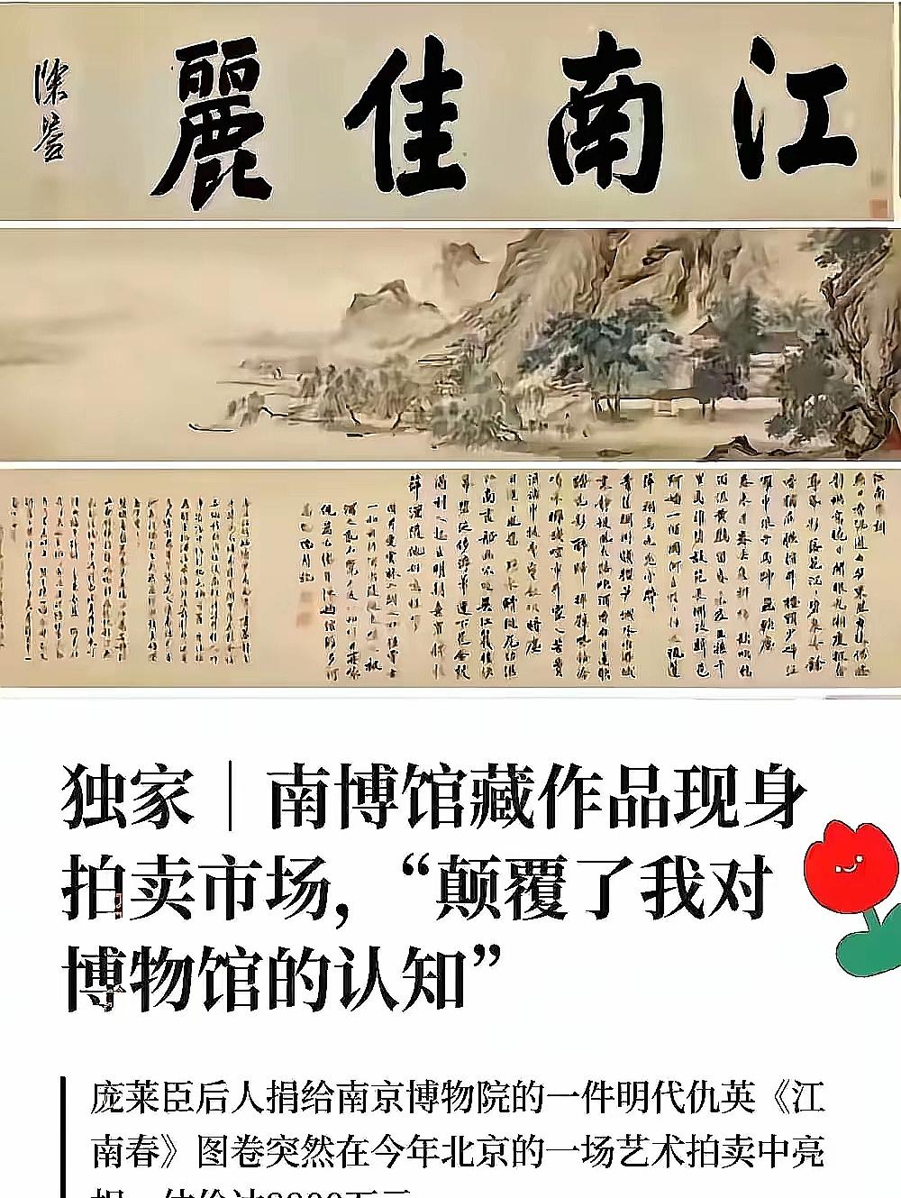 专家一句话,把南京博物院吓出一身冷汗。 说是庞莱臣的后人只要起诉,那137件捐赠的宝贝,真有可能要回去。 法律上讲,南博要是没履约,合同撤销天经地义。 这事儿越挖越深,越琢磨越吓人。庞家后人真不是说说而已,七十多岁的庞叔令女士已经一纸诉状把南京博物院告上了法庭,核心诉求就是要回那些“消失”的画。 她甚至已经向法院递交了《强制执行申请书》,要求南博必须说清楚画到底去哪儿了。这可不是闹着玩的,一场牵动法律、道义和无数捐赠者信任的暴风雨,已经来了。 南博这边也给出了回应,说当年接收的137幅画里有5幅,包括那卷《江南春》,早在六七十年代就被两批不同的专家鉴定为“伪作”或“假”了。 按他们的说法,上世纪九十年代是依照当时的《博物馆藏品管理办法》对这5幅画进行了“处置”,具体就是“划拨、调剂”给了省里的文物商店。其中,《江南春》图卷在2001年被一位“顾客”以6800元的价格买走了,发票上写的名字是《仿仇英山水卷》。从6800元到拍卖预展上的8800万元估价,这价格变化本身就像一部悬疑剧。 但庞家后人根本不认这个“伪作”的说法。庞叔令女士情绪激动地表示,他们捐赠的都是家族珍藏的珍品,南博单方面认定为伪作,严重损害了她曾祖父和父亲的声誉。 更关键的是,即便是认定为伪作需要处理,为什么几十年里从来没有通知过捐赠人一方? 画被调走、被卖出,庞家全程蒙在鼓里,直到它在拍卖市场上自己“冒”出来。这种被彻底忽视的感觉,换做是谁都难以接受。 法律专家们已经开始掰扯这里的门道了。一方观点认为,文物一旦捐赠,所有权就转移给国家了,博物馆作为管理方有权依法处置。但另一派律师尖锐指出,即便是仿制品,博物馆在处置前也应当通知捐赠方,甚至应优先让原捐赠人收回。 尤其是公益捐赠,受赠方负有更高的保管和告知义务。南博当年那份处置报告,虽然有向主管部门报批的流程,但在“是否告知捐赠人”这个环节上,现在看来可能是个巨大的争议点。 这件事早就惊动了上头。国家文物局已经接到举报,正在调查核实。江苏省文旅厅更是牵头成立了专门的工作班子,表态如有违法违规将严肃处理。一场关于五幅画去向的民事纠纷,已经升级为对国有博物馆管理规范的全面审视。 最让人后背发凉的是这件事的“后遗症”。它像一根刺,扎在所有曾经或打算捐赠文物的人心里。如果捐赠意味着永别,甚至东西哪天被卖了都不知道,谁还敢轻易把传家宝交出去? 庞家案例就在眼前,一个显赫的收藏世家,怀着爱国心无偿捐献,换来的却是数十年的沉默和一幅画的“流浪”。今天庞家站出来追问,明天会不会有李家、张家?这份信任的裂痕,南博要花多少力气才能弥补? 博物馆的金字招牌,不仅靠馆藏的奇珍异宝,更靠那份值得托付的庄重承诺。文物有真假,但诚信无价。程序上或许有当年的规定可以援引,但情理上缺失的那一环——对捐赠者的尊重与告知,恰恰是最致命的一击。 各位读者你们怎么看?欢迎在评论区讨论。