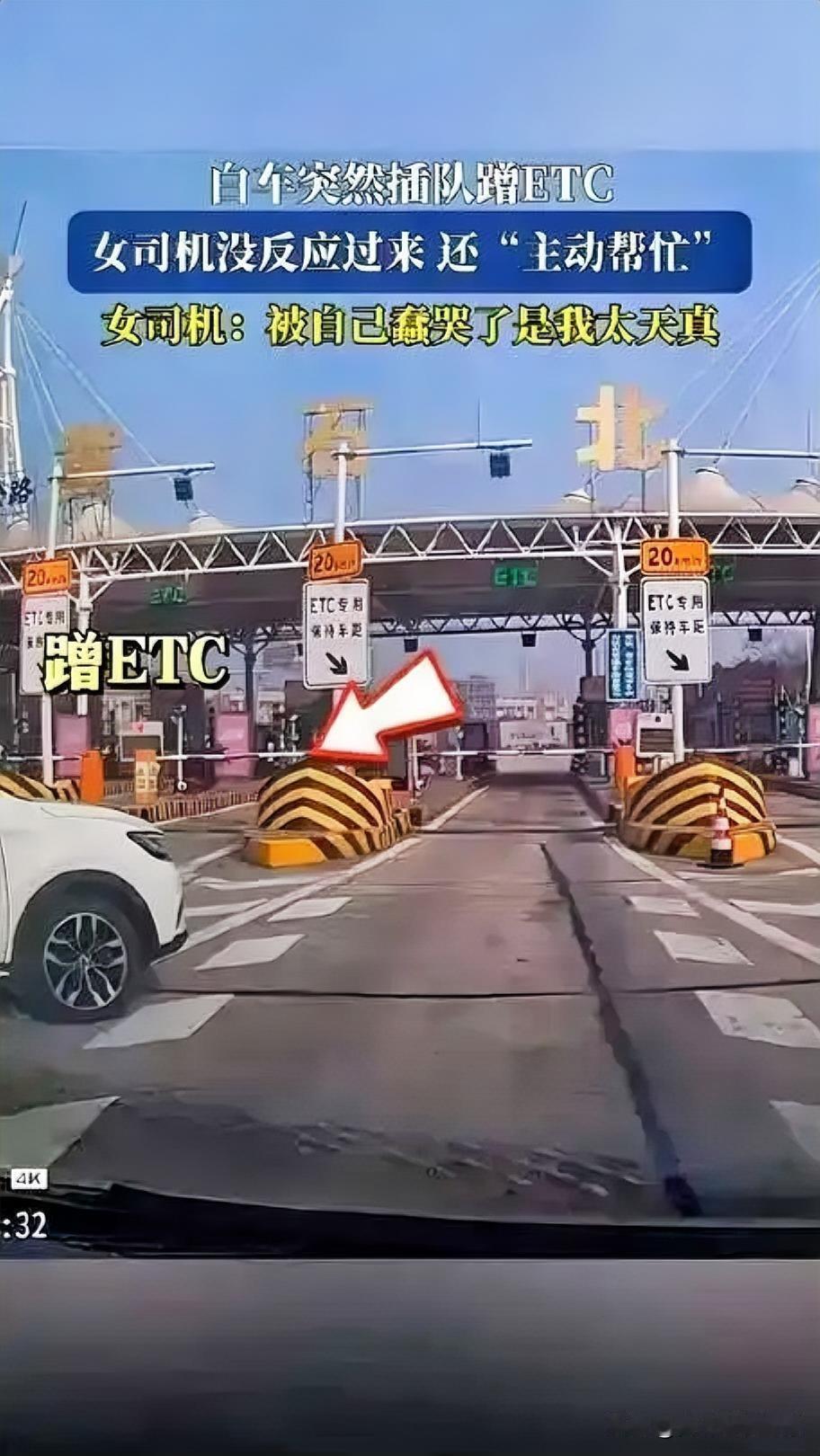 白车插队蹭ETC,女司机惊魂未定 近日,一位女司机在高速收费站遭遇闹心一幕。正常排队等待通过ETC通道时,一辆白色车辆突然从旁边强行插队,试图蹭她的ETC过杆。女司机完全没反应过来,被这突如其来的状况吓了一跳。白车蹭卡成功后扬长而去,留下女司机又气又无奈。这种不文明且危险的行为,不仅扰乱秩序,更易引发事故,必须严惩。