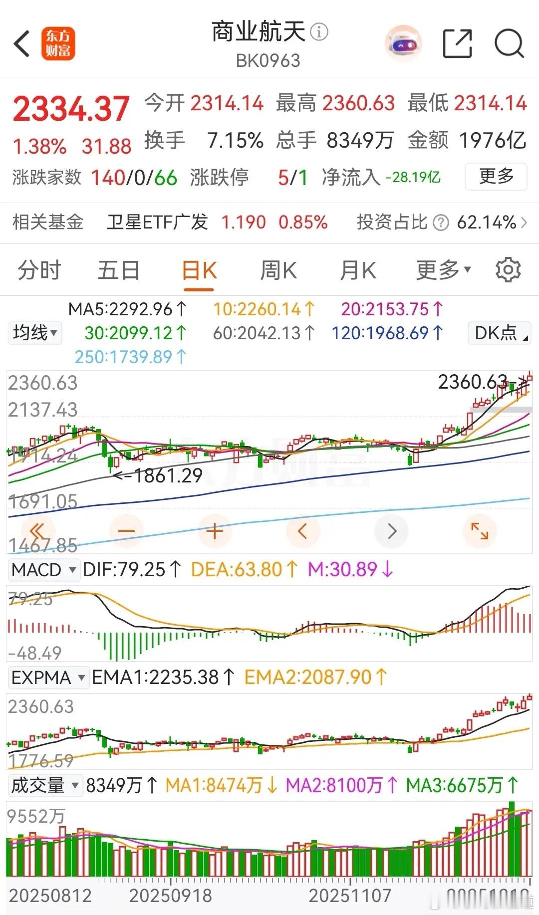 商业航天板块近一月涨幅领跑市场!尤其是周5当天,A股商业航天板块再次创出历史新高,收盘时商业航天板块上涨了 1.38%,而隔夜的美股商业航天板块则是暴涨了 6.04%,太令人惊讶了!所以现在就有一个疑问,大家认为商业航天板块还能继续涨下去吗?后续的上涨空间有多高?另外,本人周五减持了航天发展,随后看着盘中冲高确实矛盾了很久,但尾盘的杀跌,又觉得减持做对了,对此,大家怎么看待?好了,接下来就在评论区交流吧!