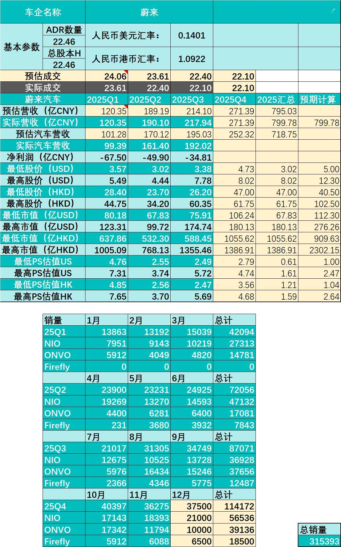 更新一下对蔚来的追踪和预测:11月交付中,预测错误最大的就是乐道,之前预测我大胆给了超过2万,但实际上交付只有11794。蔚来ES8的产能可以多一些期待,但同时需要考虑到“翘尾效应”消失,所以这里调整预测12月蔚来品牌交付数量。萤火虫预测维持不变,因为从开始出海布局,到有一定销量是需要时间的,在国内市场成功后,萤火虫在国外市场应该问题不大了,因为这款产品本来就是为国外市场设计的,我相当看好它在全球市场的潜力。关于乐道的销量不及预期,目前网上分析主要有以下几点:1.11月,理想i8、问界M8 EV等强大竞品集中上市,直接分流了同为大六座SUV市场的客户。(参考:网页链接)2.11月中旬,全国置换补贴普遍退坡,叠加“禁止异地开票”政策落地,影响了依赖跨区域订单流转的乐道L90。(参考:网页链接)3.8月上市的L90在10月达到销量高点后,初期积累的订单已集中释放完毕,市场需求进入常规状态。(参考:网页链接)4.蔚来为保L90交付而暂缓了兄弟车型L80的推出,使L90在波动时缺少缓冲。同时,同门高价位车型蔚来ES8在11月销量暴涨近4000辆,也可能分流了部分预算充足的客户。(参考:网页链接)5.有分析指出,乐道L90约600公里的CLTC续航,在面对同价位竞品的700公里续航时吸引力不足,其换电服务也因网络限制未形成压倒性优势。这五点我对续航是否是问题抱有疑问,其余四点都讲的有一定道理,补贴退坡、问界M8的竞争,三代ES8的竞争,以及延后L80上市应该是主要原因。乐道目前也开始了萤火虫的特别款车型打法,推出了黑骑士版的车型,这个打法最重要的的是“审美”,在这块蔚来是国内车企里NO.1的,这个打法最大的好处是能维持住甚至提升乐道品牌的关注度,这一点是乐道目前比较欠缺的。考虑到2026年已经确定了会继续有补贴,那么2025年剩余的时间里只会更加让人选择当“等等党”,所以很有可能12月不但没有“翘尾”,甚至还要进一步下跌。但也不用过于担心,因为汽车换购的需求是存在的,只不过是转移到了2026年。从目前蔚来的估值来看,5美元刚好是其估值的“下限”,而蔚来股价也偏偏在5美元上下波动,这绝对不是巧合!!!说明市场基本上对蔚来估值进行了一轮修复,在市场看来蔚来“不再低估”,只是目前处于一个非常保守的“不低估”估值而已。通过这次追踪,确认了我们对蔚来估值是没有问题的(跟市场一致性很强)这也意味着,后续对蔚来的交易计划,也会更有信心进行。新能源汽车车圈财报蔚来 NIO[股票]