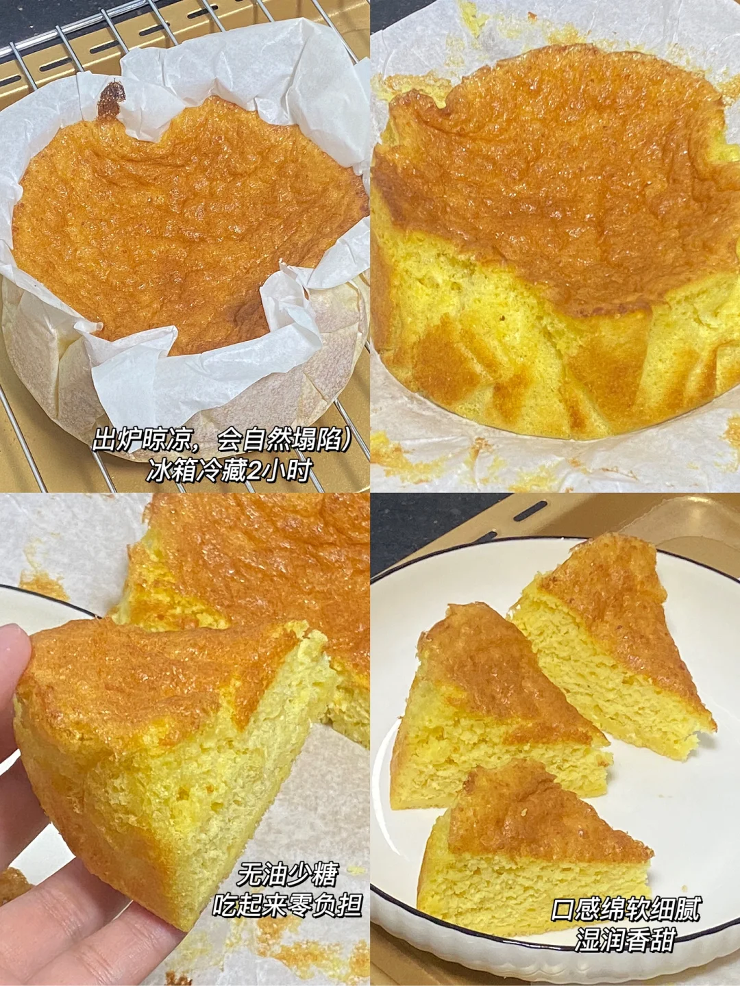 🌷无油少糖,吃起来零负担,蛋糕口感绵软细腻,湿润香甜!