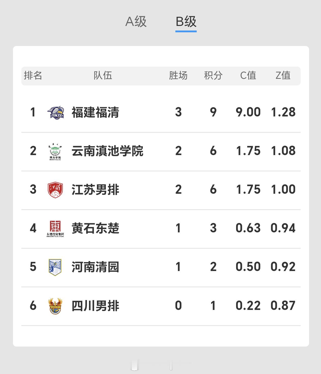 2025-2026赛季中国男子排球超级B级第三轮过后积分榜排名排超联赛2025-2026中国排球超级联赛
