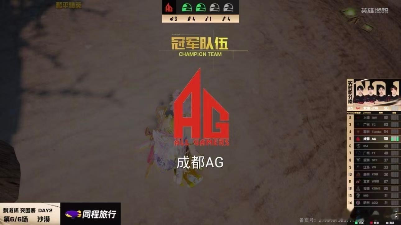 成都AG刺激杯吃鸡 恭喜AG拿下刺激杯一鸡!9淘汰的亮眼战绩尽显硬实力,沙漠图上稳扎稳打掌控节奏,最终顺利吃鸡。保持这股冲劲,后续比赛值得更多期待!