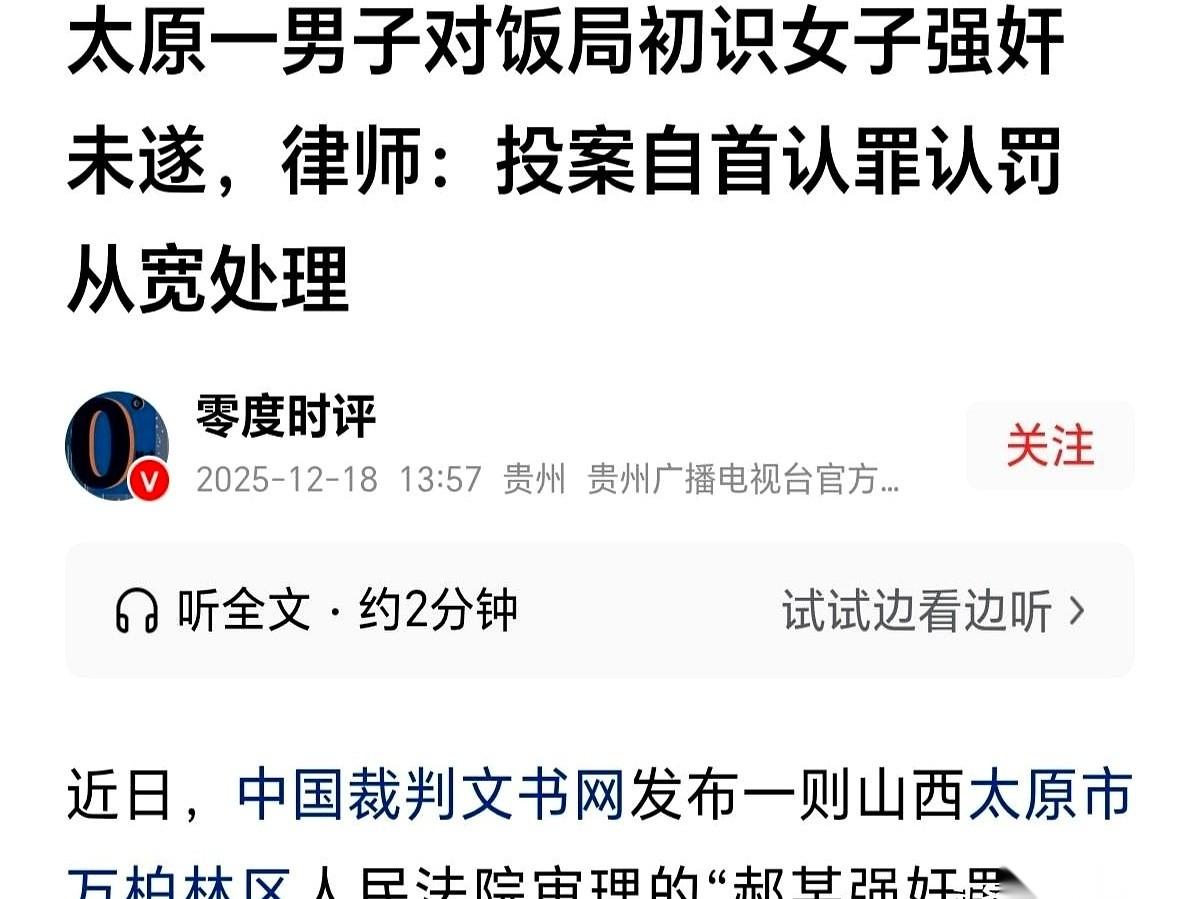 转了1500,发了个手表的链接,然后跟着男人进了酒店房间。 你猜怎么着? 最后男人进去了,一年三个月。 这事儿一说出来,肯定一堆人吵。男的说,她收钱收礼,就是默许。女的说,我明确说了只是聊天。 其实吧,这事儿没那么复杂。 那哥们儿,认识第二天,吃饭,转钱,要礼物链接,一气呵成。他心里估计早就把这事儿当成一笔交易了,明码标价,童叟无欺。 他觉得,我付了钱,你就该“交货”。 所以当姑娘在最后关头拼命反抗,说“不”的时候,他懵了,然后就上头了。他觉得这不合“规矩”,你这是在耍我,是在“装矜持”。 他错就错在这里。 他把人和人心,当成了一件可以买卖的商品。 这姑娘的做法地道吗?不好说。可能贪心,可能虚荣,可能在玩一种危险的边缘游戏。 但这些,都不是他可以动手的理由。 这个世界乱七八糟,人心隔着肚皮,很多事都是灰色的。 但在“同意”这件事上,只有黑和白。 她说“不”的时候,之前的一切,红包也好,礼物也罢,通通作废。那一刻,你唯一要做的,就是停下来。 别扯什么“她也有错”。 你可以说她贪,但你不能因为她贪,就去抢。 这哥们儿用一年多的自由,才想明白这个道理。 代价太大了。 说白了,永远别高估金钱的魔力,也永远别低估一个“不”字的分量。