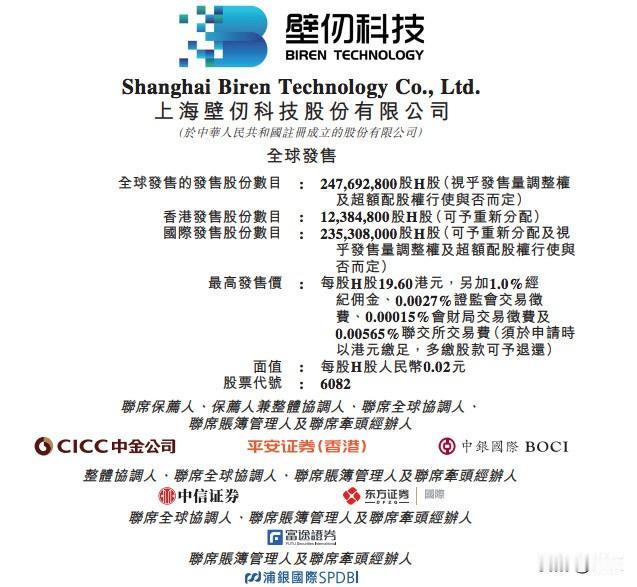 港股GPU第一股, 壁仞科技香港IPO最高发售价每股19.60港元,