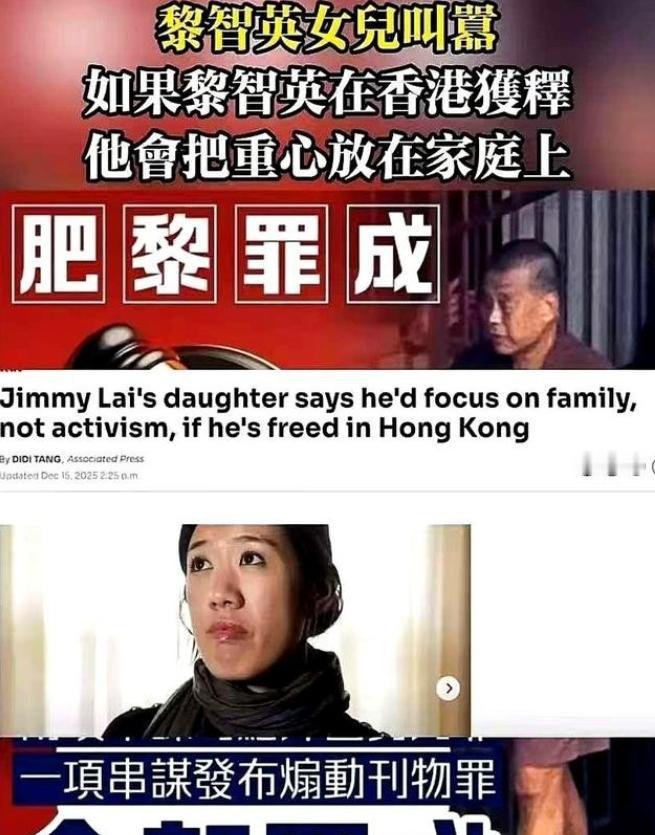 刷到黎智英女儿的最新发言,给我看愣了。她说,只要她爸能被放出来,就会把重心放在家庭上。这话听着是不是有点耳熟?她哥前脚刚跑去求见英国首相,想给爹捞个“特赦”。现在妹妹又换了个说法来了。有意思的是这话的潜台词。这是不是在说:放人,他在家呆着;不放人,我们可就继续在外面活动了? 有意思的是,Claire Lai 选在华盛顿发声,根本不是随机事件。这里本就是黎智英多年来攀附外部势力的老巢。而帮他们家在美英打通关节、铺好路子的,正是黎智英那个有美国海军情报局背景的助手马克・西蒙。 港媒早就扒过实锤。黎家子女能在美英顺风顺水扎根,全靠这号人物兜底。长女在洛杉矶开时装店,马克・西蒙不仅掏钱持股,还亲自管财务、管人事,连移民申请都一手操办; 长子当年赴美工作签证卡壳,也是他动用美国政商人脉疏通,甚至拍着胸脯跟美方说,黎智英的投资和雇佣能给美国创造就业。 说白了,黎家早就把 “分工” 摆得明明白白。黎智英在香港搞反中乱港的勾当,靠破坏香港稳定换外部势力的支持;子女则借着这层关系,在美英安身立命捞好处; 马克・西蒙就是中间的牵线人,把 “作乱” 和 “谋私” 绑得死死的。现在 Claire Lai 在华盛顿卖惨,不过是换了个 “求放人” 的壳子,本质还是延续这套 “勾结外部、施压香港” 的老套路。 更可笑的是她嘴里 “父亲愿远离政治” 的承诺。谁忘了黎智英当年有多嚣张?他曾公开喊着 “为美国而战”,把西方阵营的支持当成 “改变香港甚至中国的强大力量”; 港媒披露的证据里,他通过马克・西蒙给美国政坛捐了二十多次款,频繁密会美国驻港总领事,甚至主动凑上去乞求美国国会通过所谓 “香港人权与民主法案”,点名要制裁香港特区和内地官员。 当初为了讨好外部势力,为了搞乱香港,他连底线都丢得一干二净。现在罪证确凿被抓了,女儿倒出来说他 “要远离政治”。这哪是幡然醒悟?分明是走投无路后的无奈托词。至于狱中画宗教画像的细节,更像是精心挑的道具。 无非是想往父亲身上贴 “虔诚” 的标签,用信仰的外衣盖住他危害国家安全的罪行,想把 “叛国贼” 包装成 “悲情信徒”。 黎家兄妹这波境外奔走的操作,还恰好跟近期 G7 和欧盟的无理干涉凑到了一起。之前香港高院刚裁定黎智英两项串谋勾结外国势力罪、一项串谋发布煽动刊物罪成立。这些国家立马跳出来发声明,把罪证确凿的黎智英说成 “民主斗士”,公然指着香港的司法审判说三道四。 他们根本不管那长达 855 页的判决书,不管案件经过 855 天公开聆讯、审查了 2220 项证物的公正过程。 说白了,他们就是怕自己在香港扶植的 “代理人” 倒了,怕渗透破坏香港的图谋彻底落空。黎家兄妹的悲情表演,跟这些外部势力的政治操弄一唱一和,凑成了一场干扰香港司法的闹剧。 可他们终究打错了算盘。香港的法治从来不是靠舆论就能裹挟的。黎智英案的审判全程公开透明,控辩双方都充分举证质证,香港两大法律专业团体都确认了审讯的公平公正。 特区政府也早就说过,黎智英在狱中能享受到充分的医疗保障,也能正常进行宗教活动。那些说他 “遭受虐待” 的传言,看看他出庭时能正常行走、还主动跟亲友挥手的样子,就不攻自破了。 Claire Lai 从头到尾都在回避一个核心事实。黎智英犯的不是什么 “政治异见”,而是实实在在的叛国罪行。他操控《苹果日报》散布煽动言论,把香港社会搅得鸡犬不宁; 他拿巨额资金资助反中乱港政客,策划港版 “颜色革命”;他勾结外部势力干涉中国内政,给香港带来的创伤至今都没完全愈合。 这些罪证早就铁板钉钉。不是靠几句 “回归家庭” 的空话就能抹掉的,也不是靠外部势力施压就能改变的。黎家兄妹想拿 “家庭团聚” 当筹码换司法豁免,想靠境外势力的干预扭曲审判结果。说到底,就是螳臂当车。