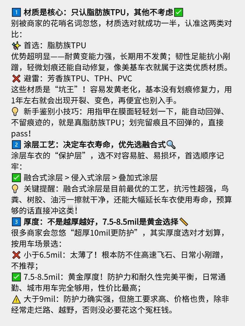 贴车衣是为了护车漆,可养护错了反而毁膜!这 6 个坑别踩: 🔴 刚贴 1 周别