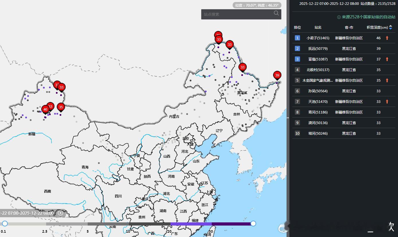 【雨雪】昨天到今晨,南方降雨缩减,新疆北部降雪发展增多,伊宁出现了大雪,今晨8时积雪13厘米,新疆小渠子积雪46厘米,为国家气象站最深。今明2天,随着新一轮冷空气到来,与暖湿气流交汇,中东部还有大范围降水。雨雪分界线大致在黄河下游沿线,黄河以南大多为雨,以北大多为雪。明天东北多地有中到大雪、局地暴雪,并且会形成积雪。