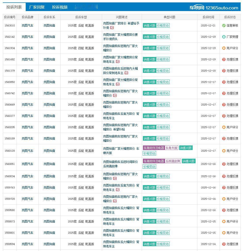 【岚图知音被曝“刚提车不久又降价”?】日前,有车友向车界反馈其新买不久的岚图知音降价了!笔者查了下相关信息,发现岚图知音降价问题正引发越来越多老车主关注,有多位车友已在第三方平台投诉表示“岚图知音购车短期内大降价”疑似背刺老车主,同时也有部分车友表示其购车后短期内品牌方就推出降价政策不合理,期望厂家能够给予补偿。 面对这种情况,笔者认为只要相关购销合同没有约定厂家或者经销商的保价义务,那么官方降价就属于市场行为,而且这个降价也不受购车时间长短的约束,毕竟类似网购的“七天无理由退货”、“保价”等在汽车这种线下交易为主的市场还没有成为惯例或纳入相关法规。“老”消费者投诉可以理解,但恐怕难以获得相应法规支持。 当然,作为厂家而言,在推出促销政策时,也应兼顾老车主利益,尤其是新提车不久的“老”车主的感受,并做好安抚,惟其如此才能提升品牌美誉度,避免引发集体投诉等情况。销量数据显示,岚图知音11月零售销量为3162辆,是岚图第三畅销的车型。