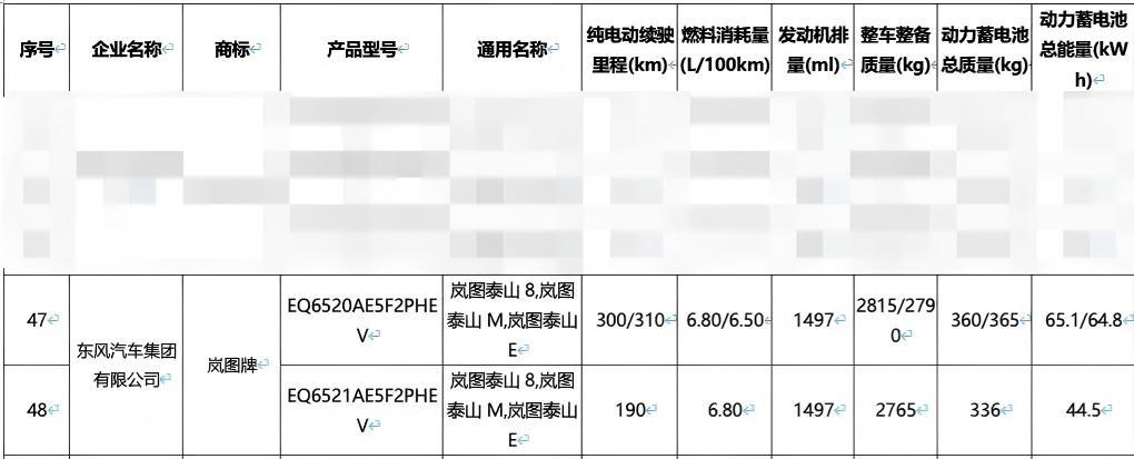 岚图泰山8续航申报信息曝光! 工信部数据显示,这款比现款泰山“瘦身”的中大型插混SUV,纯电续航直接干到310km,还带华为ADS激光雷达,这是要在新能源赛道杀疯?[吃瓜群众] 核心亮点: - 续航:纯电190km/300km/310km(顶配310km,馈电油耗低至6.5L/100km,油电通吃没焦虑) - 尺寸:5200/2025/1814mm,轴距3090mm(比现款泰山短30mm轴距+30mm车长,但宽度没变,空间依然能打) - 配置:华为ADS激光雷达智能辅助驾驶(智能驾驶直接拉满[666],高速城区都能“托管”?) - 动力:1.5T发动机(110kW)+双电机,后电机最高230kW(性能版味儿有了,加速应该不慢) 尺寸“缩水”但续航和智能配置给足,岚图这是用“小身材大容量”策略抢市场? 310km纯电续航在同级别插混SUV里已属第一梯队,再加上华为ADSbuff,泰山8说不定能成岚图的“销量救星”? [吐舌]