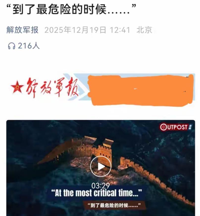这个信号不简单——做最坏准备! 12月19日,军报平台发布消息,只有短短几个字:“到了最危险的时候......”! 说白了,军报这句“到了最危险的时候……”就是给全体中国人敲的警钟,提醒我们内外隐患已到临界点,唯有凝聚一心清内忧、定外患才能安然过关。 先看天上的 “隐身包围圈”。前段时间,日美澳三国把 24 架 F-35 隐身战机凑到一起,在日本搞了场大演习。你以为他们只是练练兵?错!这是在搭 “空中包围圈”。他们练的是 “打了就跑” 的战术,就是想让这些隐身战机神不知鬼不觉地部署到我们周边,一旦有事就能快速偷袭。 要命的是,这种演习一年比一年密集,从北边的日本到南边的澳大利亚,他们正在织一张针对我们的高端战力大网,就等机会收网。 再看远隔重洋的 “搅局者”。英国现在是铁了心要往亚太凑,工党上台后不仅没收敛,反而更嚣张。一边喊着要派航母来新加坡 “串门”,一边借着加入经贸组织的机会,到处煽风点火,把 “反经济胁迫” 这种政治套路塞进经贸合作里。 说白了,就是想一边用军舰壮胆,一边拆我们的经贸朋友圈,典型的 “又当又立”,就盼着我们顾此失彼。 最阴的还是网络里的 “暗箭”。前段时间破获的美国安局网络攻击案,看完让人后背发凉。美方从 2022 年就盯着我们的国家授时中心下手,先靠垃圾短信偷资料,再用偷来的密码闯进内部网络,最后埋了 42 款病毒,就想瘫痪我们的 “北京时间” 系统。 要知道,我们的通信、金融、电力、国防,全靠这个系统撑着,一旦被搞垮,整个国家的运转都可能停摆。更恶心的是,他们还躲在日本、菲律宾的服务器后面搞偷袭,转过头来还倒打一耙说我们 “搞网络攻击”。 外部的刀子够狠,内部的短板也被人盯着打。现在大家都在搞清洁能源转型,锂、钴、镍这些关键矿产,就成了 “工业粮食”。可我们的命门就攥在别人手里 — 比如钴,78% 的产量都来自一个国家,我们作为最大买家,进口渠道全被别人卡着。 糟糕的是,美国和他的盟友还在到处抢矿,逼着资源国跟我们断合作,想把我们的产业链掐断。而我们自己,在挖矿、炼矿的高端设备和技术上还有差距,回收体系也跟不上,这就等于把能源转型的命脉,主动递到了别人手里。 你以为这些事都是孤立的,错,它们早就拧成了一张网。日美澳的军事演习,是给产业链围堵撑场子;英国的经贸搅局,是想拆我们的外部助力;网络攻击,是直接捅我们的 “心脏”;而内部的产业链短板,刚好给了他们下手的机会。内外一夹击,这就是最危险的地方! 但危险不代表绝望,警钟不是让我们恐慌,是让我们清醒。 解放军的战备演训从来没停过,新型装备不断列装,那些所谓的 “隐身包围圈”,在我们的雷达和战机面前,根本藏不住;针对网络攻击,我们的安全部门早就布下天罗地网,抓得住黑手、守得住防线;关键矿产方面,我们也在赶紧补短板,一边升级技术,一边找更多合作国家,把供应链的主动权抢回来。 别再抱有侥幸心理,别觉得麻烦离自己很远。清除内部的问题,筑牢自己的根基;面对外部的挑衅,该硬气就硬气。
