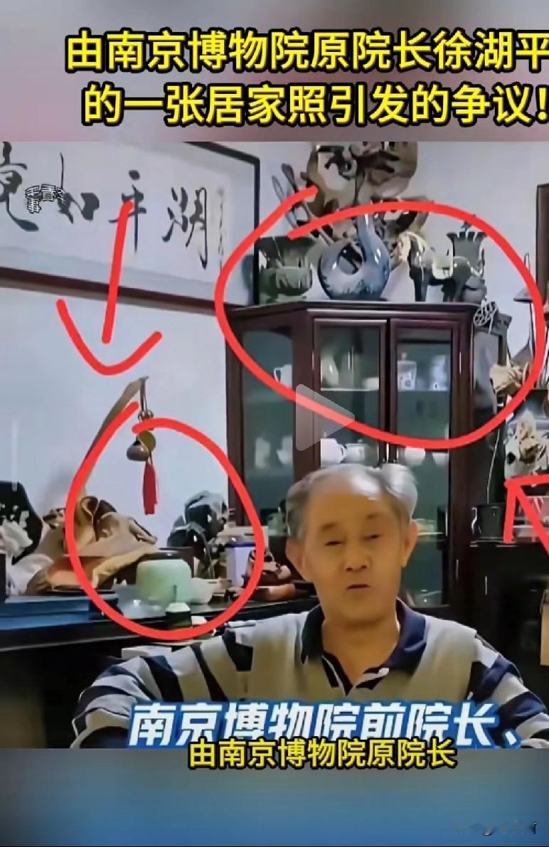 咱也不懂,但是南博的前院长徐湖平此视频一出,这张照片火了,所圈之处大有作为啊,看着平平无奇的瓶瓶罐罐,一张生灰的字画,网友说大开眼界啊。 文人果然是文人啊,南博的前院长,本来是出面回应最近的“传闻”,体现他这一身的朴实无华,他坚持“自己不收藏、不帮别人鉴定、不参与交易”的原则,但作为收藏协会会长,可能因工作接触和个人爱好,还是会积累部分“小收藏”。 对于他家中的宝贝,他个人表达属于自己花钱购买的,有些或是朋友赠予。比如这个“唐三彩马”是旅游纪念品,书法作品来自沙孟海先生的赠予,绝对没有通过职务便利获取。 很多质疑是真是假的时候,网友们百分之百的确信,这些东西肯定是真的,要是假的你让博物馆的馆长脸往哪搁呢? 针对近日南博《江南春》等捐赠文物去向的争议,南博退休职工郭礼典公开实名举报徐湖平,但其本人回应称“非经手、不懂鉴定”,都80岁高龄的他了,能奈何呢? (图片来自网络视频)