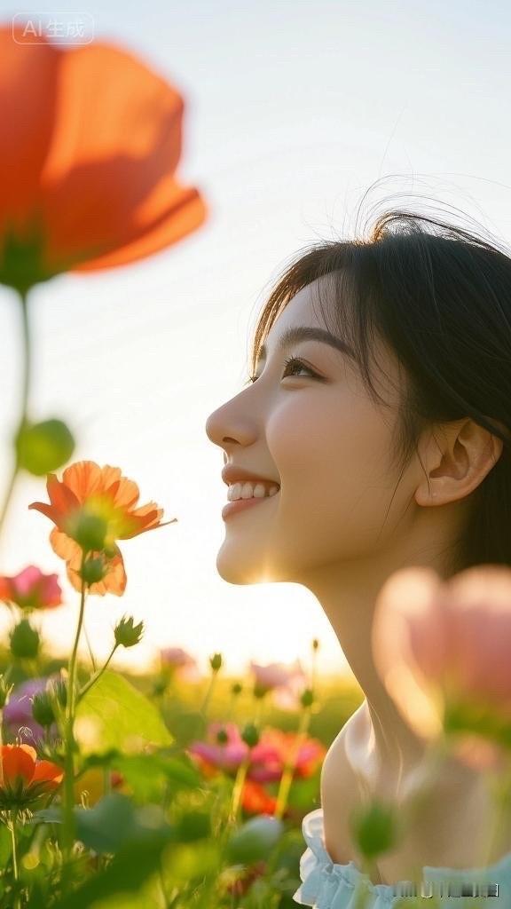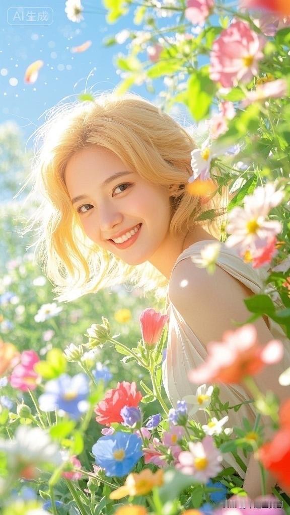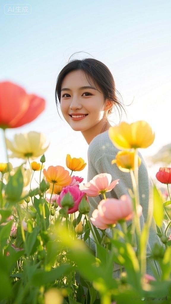 花田里的小仙女,手捧花束笑盈盈。