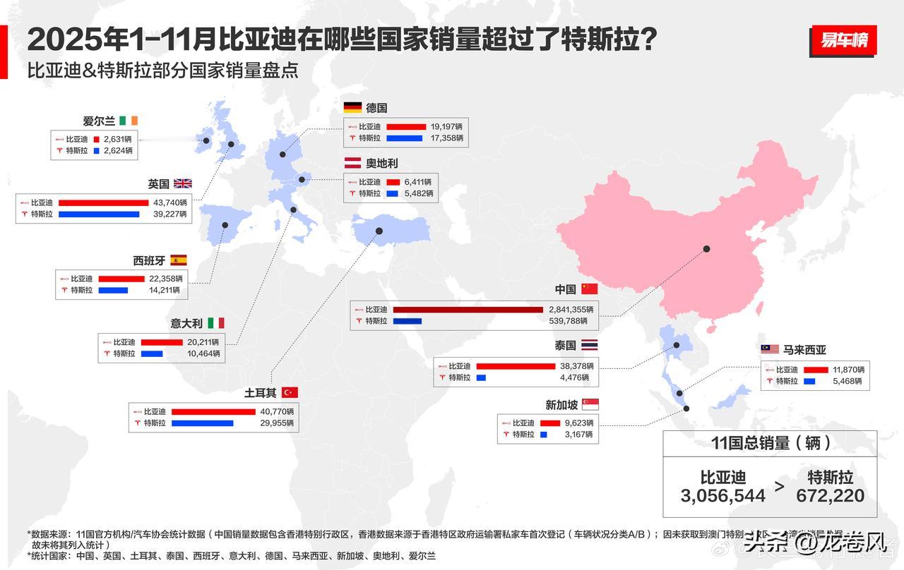 今年比亚迪国内外冰火两重天。 国内让银河,零跑搞得难受。 出了海倒是卖的很好,欧洲等地持续销量井喷。 甚至在不少国家都反超特斯拉了。 要知道特斯拉进入欧洲更早,甚至在德国有生产基地哦。 明年希望那批改款车和新车能帮助比亚迪提升下市场份额吧。 其他没什么好分析的了比亚迪 比亚迪销量