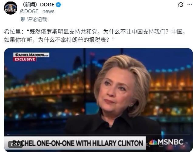 12月21日,美国前国务卿希拉里说:“既然俄罗斯明显支持共和党,为什么不让中国支持我们(民主党)?如果中国能听到我说的话,为什么不拿特朗普的报税表?” 这话乍一听荒诞又突兀,细品才发现全是选举攻防的小心思,压根不是真要找中国帮忙。希拉里哪是想让中国支持民主党啊,这分明是拿话挤兑人。 熟悉美国政坛的都知道,“外部势力干预选举”是两党互相攻击的常用套路,之前就总有人炒作“俄罗斯支持共和党”。 希拉里这话相当于把这个套路反过来用,表面喊中国帮忙,实则是嘲讽这种“甩锅外部”的选举玩法,同时也暗戳戳影射特朗普和共和党跟外部势力有牵连。 而且后半句要“特朗普报税表”的要求,本身就不切实际,明眼人都能看出来是故意拿不可能实现的事开涮,本质就是借这种夸张的表述博眼球、贬对手。 再往深了想,希拉里特地提“报税表”,醉翁之意不在酒,核心是想敲打特朗普的“对等关税”政策。 要知道特朗普把关税当成了经济政策的“王牌”,今年年初就依据相关法律对多个贸易伙伴加征关税,还搞了所谓的“对等关税”,这一政策早就争议不断。 不仅美国国内的小企业主和多个州联名起诉,认为他越权,连联邦最高法院都已介入审理,甚至有估算称如果判决不利于特朗普政府,可能要返还高达1万亿美元的关税税款。 希拉里拿报税表说事儿,其实是想把特朗普塑造成“不透明、不守法”的形象——你连报税都藏着掖着,搞关税政策的时候会不会也暗箱操作、损害民众利益?这种关联虽然间接,却能精准戳中选民对特朗普政策的不满。 毕竟现在美国通胀压力还没完全缓解,66%的选民都觉得家庭收入跟不上生活成本,而特朗普的关税政策被认为是推高物价的原因之一,希拉里这是精准踩中了选民的痛点。 说到底,这一番话的最终目的还是为了争取中间选民。当前选情胶着,特朗普的支持率只有43.6%,在经济议题上的认可度更是低至40.7%,中间选民的态度直接决定选举走向。 希拉里特意强调“报税表”这种象征“透明度”的东西,就是想给民主党立“重视政治责任、做事公开透明”的人设,和共和党形成鲜明对比。 对中间选民来说,他们最反感的就是政客胡来、政策朝令夕改,而“透明度”“责任担当”正是他们看重的品质。 希拉里把税务透明和政策合法性绑定,潜台词就是“你看特朗普连报税都不敢公开,他搞的关税政策能靠谱吗?我们民主党才是讲规矩、为民众着想的”,用这种方式拉拢那些还在摇摆的选民。 其实希拉里这波操作,本质上还是美国两党选举的老套路——不聊政策细节,专靠话术抹黑对手、塑造自身形象。距离中期选举越来越近,这样的“奇葩言论”恐怕还会不断出现。 但对普通美国民众来说,他们更关心的是收入能不能涨、物价能不能降、工作能不能稳,这些花里胡哨的政治话术,终究解决不了实际问题。 希拉里的话或许能博一时眼球,但能不能真的帮民主党争取到选票,恐怕还要看选民买不买这份账。