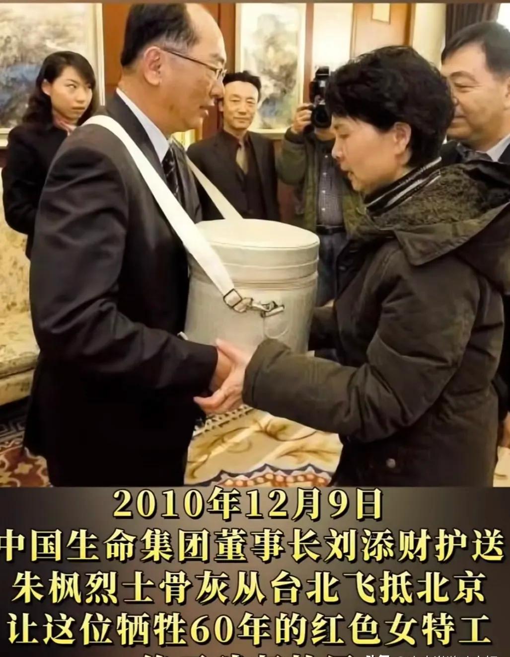 朱枫烈士回家路走了整整60年。 台湾企业家亲历朱枫烈士骨灰回归故里。 2010年12月9日,中国生命集团董事长刘添财护送朱枫烈士骨灰从台北飞抵北京,终于让这位牺牲60年的烈士魂归故里。 朱枫不是什么天生的英雄,她只是个浙江镇海的普通女性,家里经营着商铺,从小读过书,写得一手好字。 1945年,她加入组织,靠着商人的身份作掩护,在上海、香港一带传递情报。1949年,解放战争进入关键阶段,台湾的情报网络急需补强,组织找到她,问她愿不愿意赴台执行任务。那时她的女儿才十几岁,丈夫远在海外,她看着窗外的万家灯火,只说了一句“国家需要,我去”。没人知道,这一去,就是永别。 到了台湾,朱枫化名“陈太太”,周旋在国民党的军政要员之间。她把情报缝在旗袍的夹层里,藏在点心盒的底部,一次次躲过特务的盘查,把台湾的防务部署、兵力调配信息源源不断地送回大陆。 那些情报,后来在解放东南沿海岛屿的战斗中,发挥了关键作用。1950年,因为叛徒出卖,朱枫的身份暴露,她在基隆码头准备撤离时被捕。特务对她用尽酷刑,老虎凳、辣椒水轮番上阵,她的手指被夹断,浑身是伤,却始终没吐出一个字。 狱中,她写下绝笔信,字里行间没有一句抱怨,只叮嘱女儿“要好好学习,报效国家”。同年6月,朱枫在台北马场町刑场英勇就义,年仅45岁。 她的骨灰,被暂时安葬在台北六张犁公墓的一处角落。那时的时局,两岸音讯隔绝,她的家人连她牺牲的消息都过了好几年才知道,更别说寻找骨灰的下落。这一等,就是整整60年。 刘添财会卷入这件事,不是偶然。他的父亲是当年的国民党老兵,亲眼见证了朱枫烈士的就义过程。老人临终前,拉着刘添财的手反复念叨:“那个女先生是个好人,是条硬骨头,你要是有机会,一定要帮她回家。”刘添财把这句话记在了心里,从那时起,他就开始留意朱枫烈士的相关资料。 2000年,两岸关系逐渐缓和,刘添财终于有了机会。他放下手里的生意,一头扎进台湾的档案馆、公墓管理处,查找朱枫烈士的安葬记录。刚开始,没人愿意理他。六张犁公墓埋着太多当年的烈士,很多档案都被标注为“涉密”,工作人员要么推脱说查不到,要么劝他别多管闲事。 刘添财没放弃,他一趟趟跑,一次次说明来意,还联系了台湾的文史工作者,寻访当年的知情人。有位当年的狱警,已是耄耋之年,被他的执着打动,说出了朱枫烈士安葬的具体位置。 2009年的一天,刘添财在六张犁公墓的荒草里,找到了那块刻着“朱谌之”的墓碑。朱谌之是朱枫的化名,墓碑上没有照片,只有简单的生卒年月,风吹雨打这么多年,字迹都快模糊了。 找到骨灰只是第一步,把烈士送回家,还要跨越重重障碍。刘添财联系了大陆的相关部门,沟通骨灰护送的事宜。他还在台湾奔走,办理各种手续,有人劝他,这件事费力不讨好,还可能得罪人。 刘添财只是摇头:“我答应过我父亲,也答应过自己,烈士为国捐躯,不能让她孤零零地留在异乡。”那段时间,他瘦了十几斤,头发也白了不少。2010年12月9日,是个晴天。刘添财捧着朱枫烈士的骨灰坛,从台北桃园机场起飞。机舱里,他一直把骨灰坛抱在怀里,不敢松手。他说,那一路,他好像听见了烈士的心跳,听见了她对家乡的思念。 飞机降落在北京首都国际机场的那一刻,等候在停机坪的人们,都红了眼眶。朱枫烈士的女儿,已是满头白发的老人,她颤抖着伸出手,抚摸着骨灰坛,嘴里反复喊着“妈妈,你回家了”。随后,骨灰被送往朱枫的故里浙江镇海,安葬在镇海革命烈士陵园。下葬那天,淅淅沥沥地下着小雨,当地的百姓自发赶来送行,队伍排了好几里地。他们说,朱枫是镇海的女儿,是国家的英雄,她终于回家了。 60年的等待,60年的漂泊,朱枫烈士的回家路,走得太漫长。这条路,不仅是一个烈士的归乡路,更是两岸同胞血脉相连的见证。刘添财的执着,不是为了名利,是为了完成父辈的嘱托,是为了告慰烈士的英灵。那些为了国家和民族牺牲的英雄,从来都不会被遗忘。他们的名字,会刻在历史的丰碑上,刻在每一个中国人的心里。 各位读者你们怎么看?欢迎在评论区讨论。