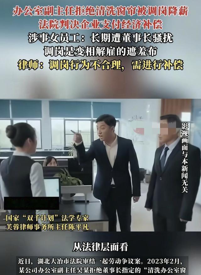 “色欲熏心?”湖北大冶,办公室副主任吴某,因拒绝给董事长洗窗帘,直接被降成打字员,工资从4300元砍到3000元,办公室门锁被换,还火速招了新人顶替。 (官方信源:光明网) 吴女士于2012年6月进入湖北大冶一家公司,从普通职员起步。她最初负责基本的行政事务,如处理文件和协调内部事宜。公司规模不大,她每天处理大量琐碎任务,逐步熟悉业务流程。通过几年积累,她掌握了办公室管理的各项技能,包括档案整理和会议安排。 她的工作表现稳定,逐步获得认可。公司在当地逐步发展,她随之承担更多责任,如监督下属和处理外部联络。到2020年,她已升至办公室副主任职位,月薪达到4300元。这期间,她专注本职,避免卷入内部纷争。公司环境要求员工遵守严格规章,她一直保持低调作风。11年里,她见证企业从小型到中型转变,自身角色也从执行到管理过渡。 董事长李某在公司行使管理权期间,对吴女士实施多次不当行为。他通过微信发送非工作内容的消息,涉及个人隐私和外貌评论。这些消息多在非办公时间发出,吴女士多次回复表示反对。公司内部会议中,李某有肢体接触举动,如触碰手臂或手背。 吴女士每次都回避此类行为,继续专注工作。李某未停止此类举动,反而持续发送邀请外出或暗示性内容的消息。吴女士保留所有记录,作为证据备份。这些行为持续一段时间,导致工作关系紧张。李某的举动违反职场规范,影响员工正常履职。 2023年2月,李某进入办公室,要求吴女士拆下并清洗高悬窗帘。她查看指令后,表示这超出职责范围,直接拒绝。李某离开后,公司迅速行动,下发人事调整通知。吴女士的副主任职务被撤销,调至打字员岗位。月薪从4300元降至3000元,减少1000多元。 公司同时更换了她办公室门锁,导致她无法进入原工作区域。她的电脑账号被注销,无法访问系统。新人很快入职,接手原属她的任务,如档案管理和协调工作。这些措施直接源于吴女士对先前骚扰的拒绝,以及对洗窗帘指令的反对。公司以此方式实施变相辞退,迫使员工离职。 职场骚扰问题在许多企业存在,李某的行为属于典型案例。根据相关法律,骚扰包括违背意愿的言语或肢体举动。公司管理层利用职权实施报复,违反劳动法规。吴女士面临的调岗降薪,未经协商一致,属于单方变更合同。 类似事件在全国多地发生,法院判决往往支持员工权益。企业需遵守劳动合同法,确保调整有合理依据。李某的举动反映出一些老板的权力滥用,影响员工心理健康。吴女士的经历提醒职场人士,及时保留证据至关重要。 法院审理显示,双方劳动关系从2012年6月持续到2023年2月。公司辩称调岗属自主管理,但证据链证明行为带有报复性质。微信记录展示李某的骚扰内容,包括深夜消息和邀请。法官引用劳动合同法第35条,强调变更需双方同意。公司未能提供协商证明,行为被认定违法。民法典第1010条适用于骚扰认定,法院确认李某举动违背吴女士意愿。这些法律条文保护劳动者权益,避免职场霸凌。公司支付经济补偿金计算基于原月薪4300元,乘以工作年限。 经济补偿金标准为47300元,加上未休年假工资3163.22元,总额50463.22元。公司需按判决执行,吴女士获得赔偿后离职。类似判决在全国推动职场公平,许多员工借鉴此案维权。企业管理需注重合规,避免因个人行为引发纠纷。李某作为董事长,其举动损害公司声誉。吴女士在新岗位继续行政工作,专注日常事务。法院判决强化法律信号,警示管理层尊重员工边界。 职场中,女性员工常面临隐形压力,李某的骚扰属于常见问题。数据表明,许多类似事件因证据不足而不了了之。吴女士的成功在于备份聊天记录,这成为关键证据。企业人事调整需有书面形式,避免口头决定引发争议。公司招新人替代岗位,属于优化行为,但需遵守程序。吴女士的月薪降幅达近四分之一,影响生活开支。法院细算补偿,体现公正原则。 劳动争议案审理周期通常数月,吴女士提交起诉后,法庭组织双方陈述。公司坚持调整合理,但法官通过证据推翻其说法。判决书明确劳动关系解除日期为2023年2月。公司上诉可能性低,此类案件多以调解或一审结束。吴女士的经历在当地引发讨论,许多人分享类似遭遇。法律援助机构提供支持,帮助员工了解权益。 企业文化建设需杜绝骚扰,李某的行为暴露管理漏洞。公司应建立投诉机制,保护举报人。吴女士拒绝洗窗帘,体现对非分要求的态度。类似指令往往测试服从度,拒绝后报复常见。法院判决推动企业反思用工自主权界限。补偿金计算公式基于平均工资,确保员工利益。
